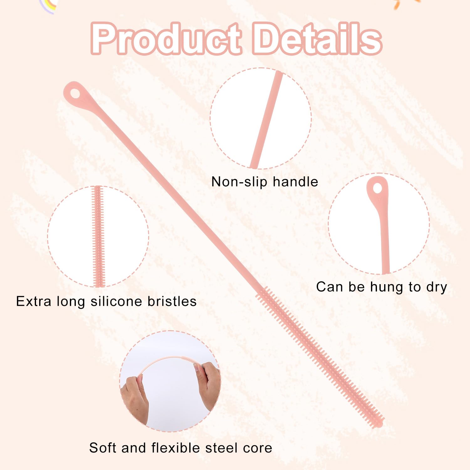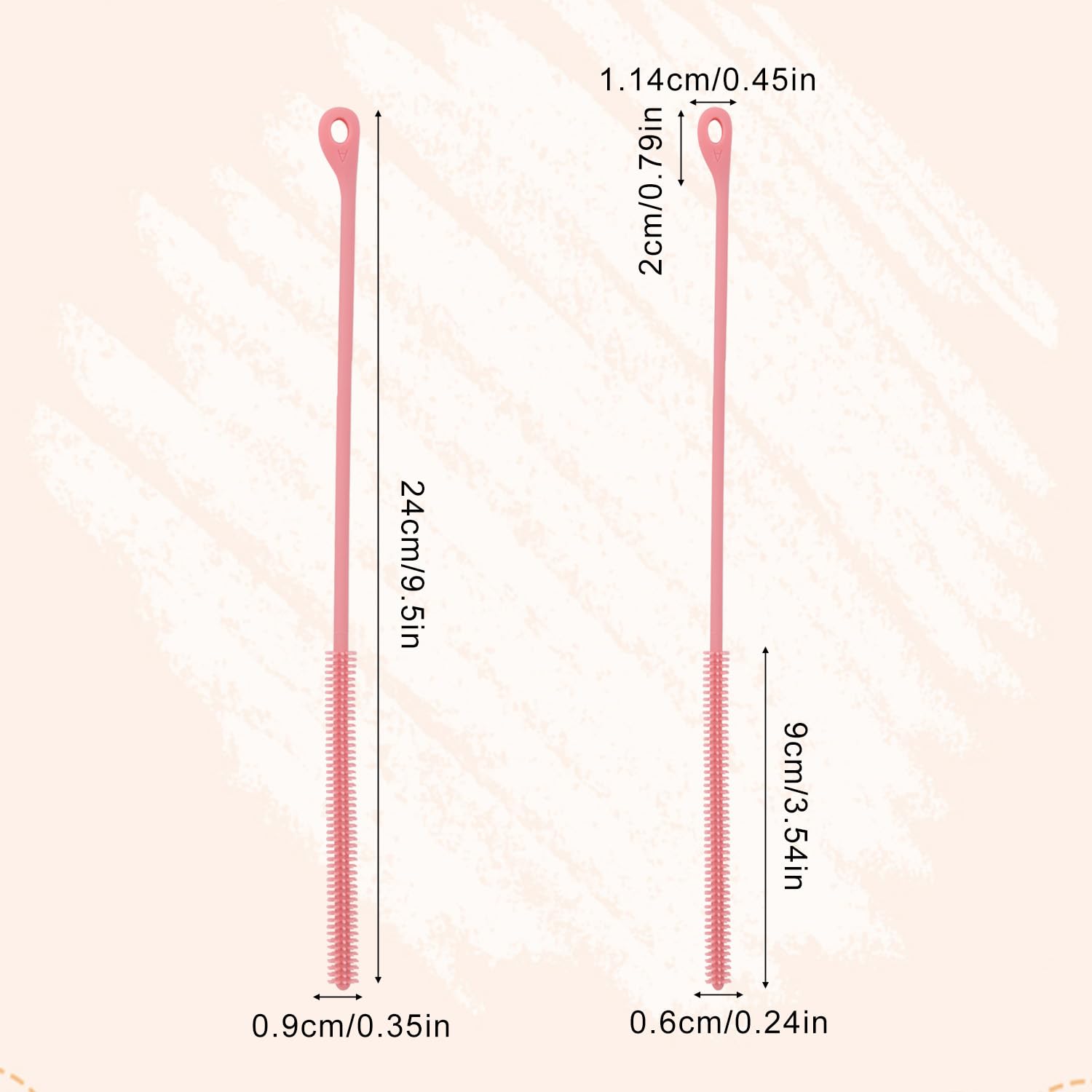 2pcs Silicone Straw Cleaner Brush, 9.45in Elastic Straw Cleaner Brush Extra Long Bristles Multi-Purpose Cleaning Tool for Straight & Bent Pipe Long-Spout Pot (Pink)