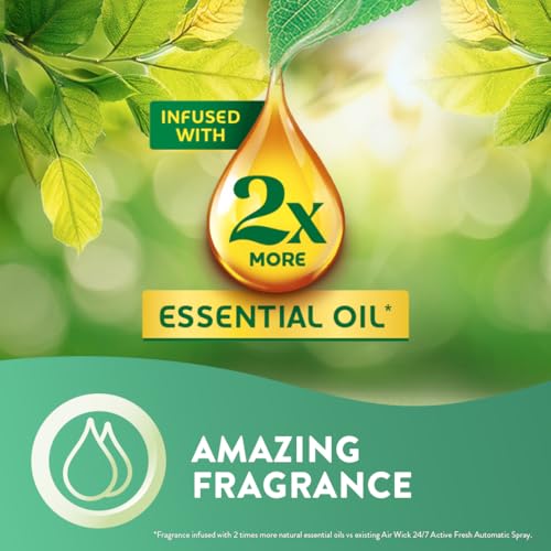 - Infused with 2x more essential oils* (*vs existing Air Wick Active Fresh Autospray Refills)