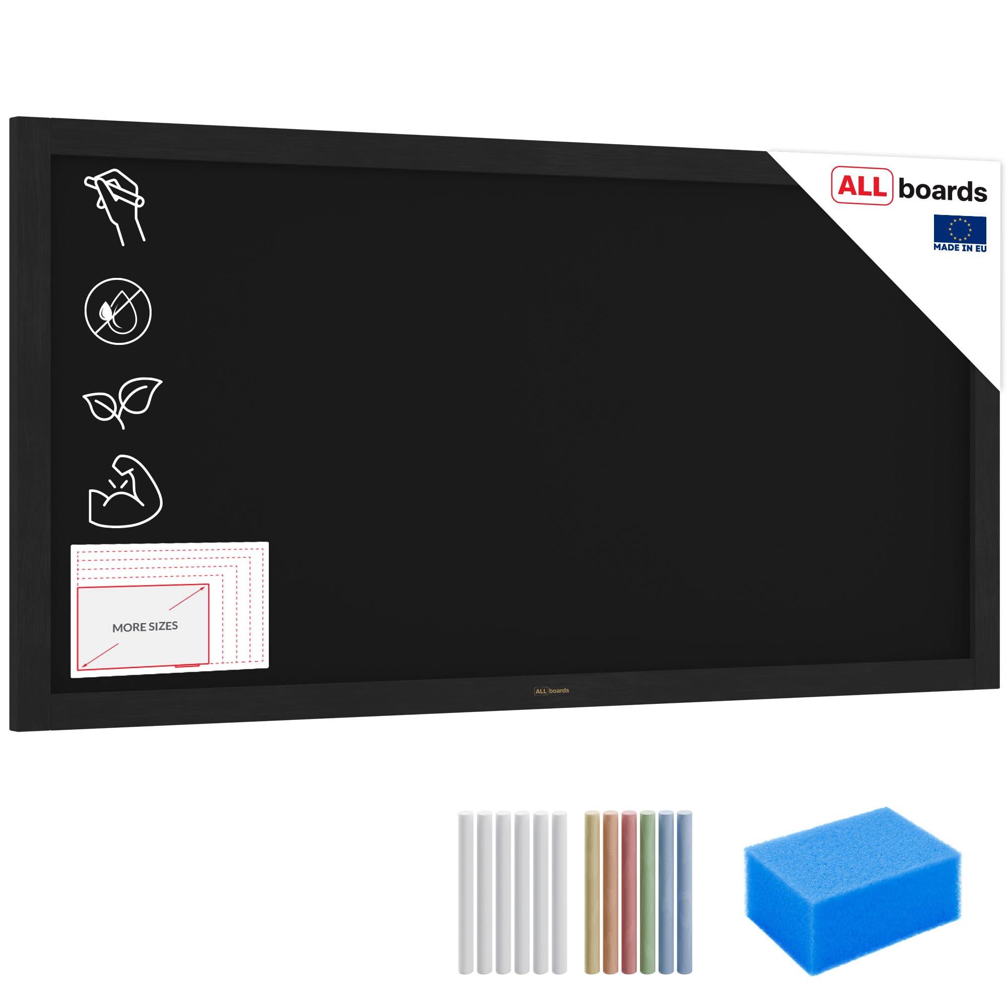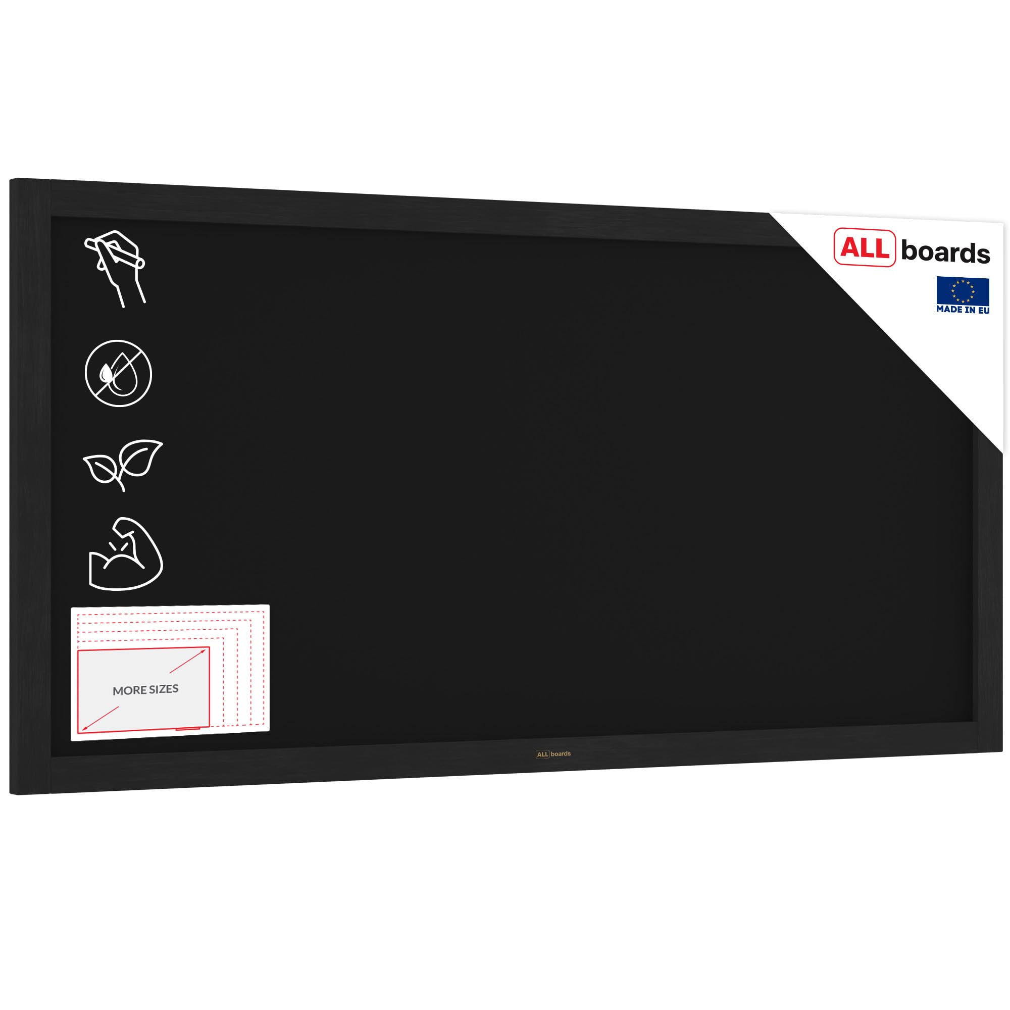 ALLboards Chalkboard with Black Varnished Wooden Frame 120x60cm, Large Chalk Board, Blackboard