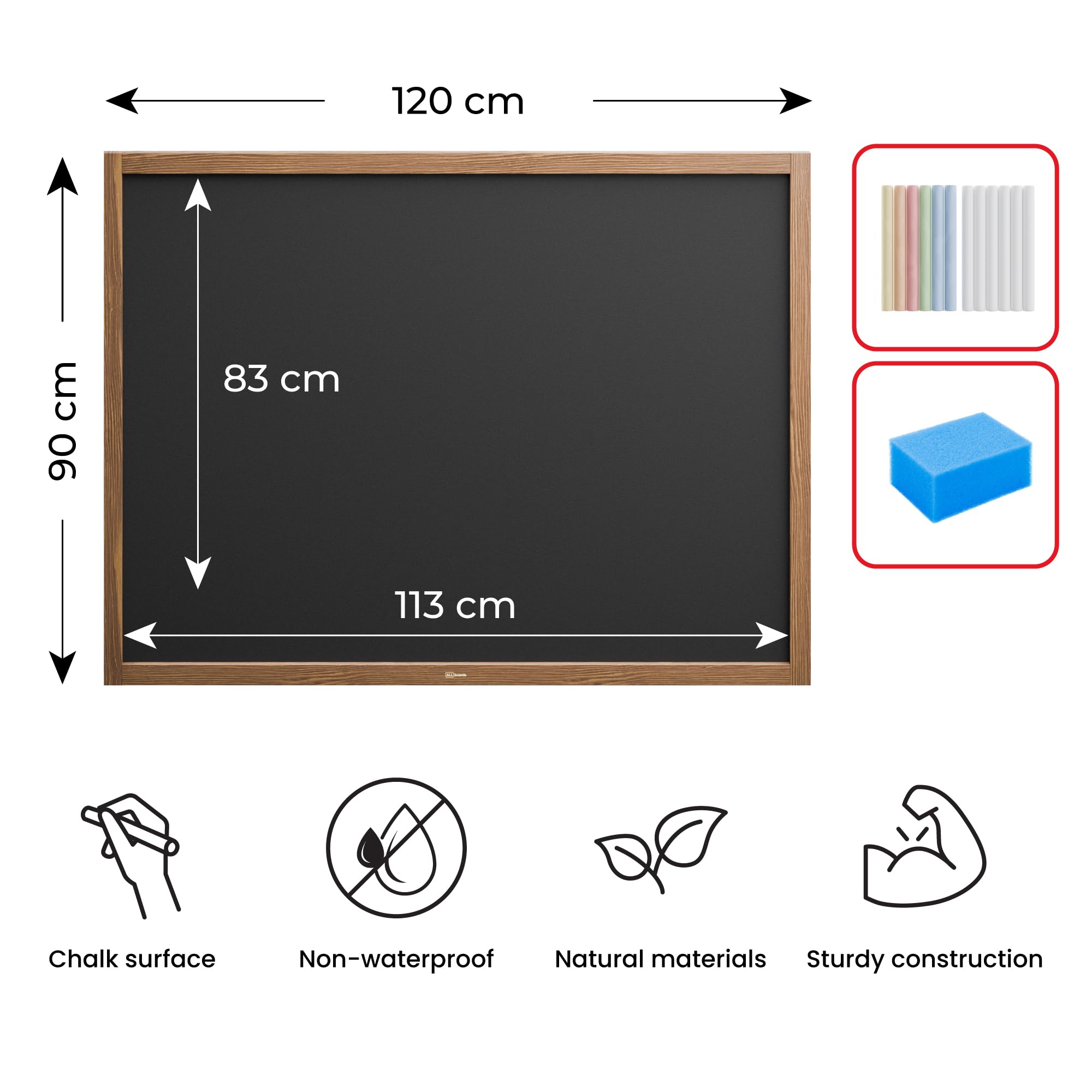 ALLboards Chalkboard with Varnished Wooden Frame 120x90cm, Chalk Writing Board, Blackboard