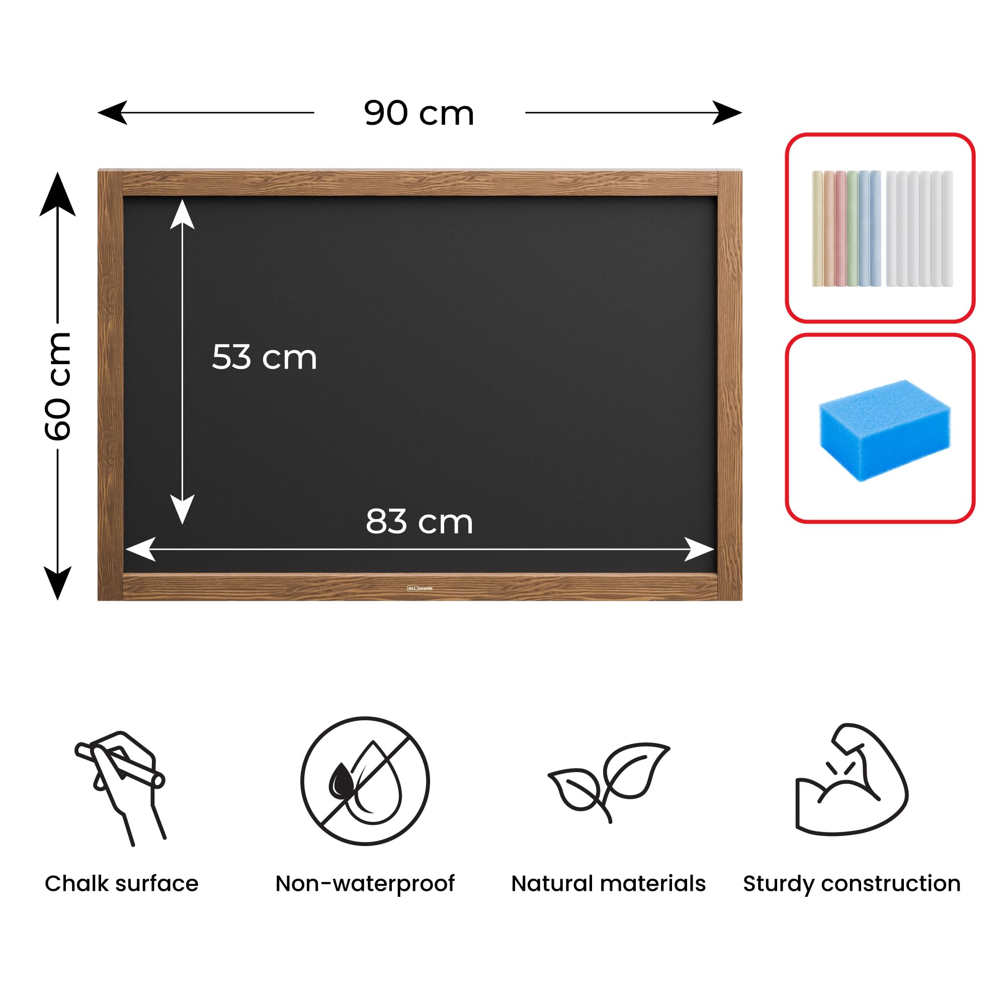 ALLboards Chalkboard with Varnished Wooden Frame 90x60cm, Chalk Writing Board, Blackboard