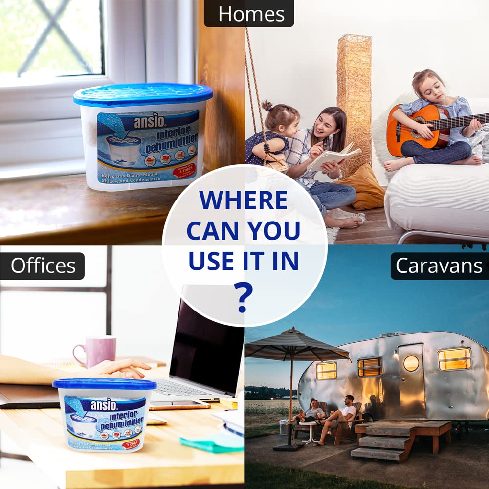 - DAMPNESS / HUMIDITY REMOVER: Ansio Interior Dehumidifiers are designed to remove dampness & humidity from the air. For domestic purposes only.