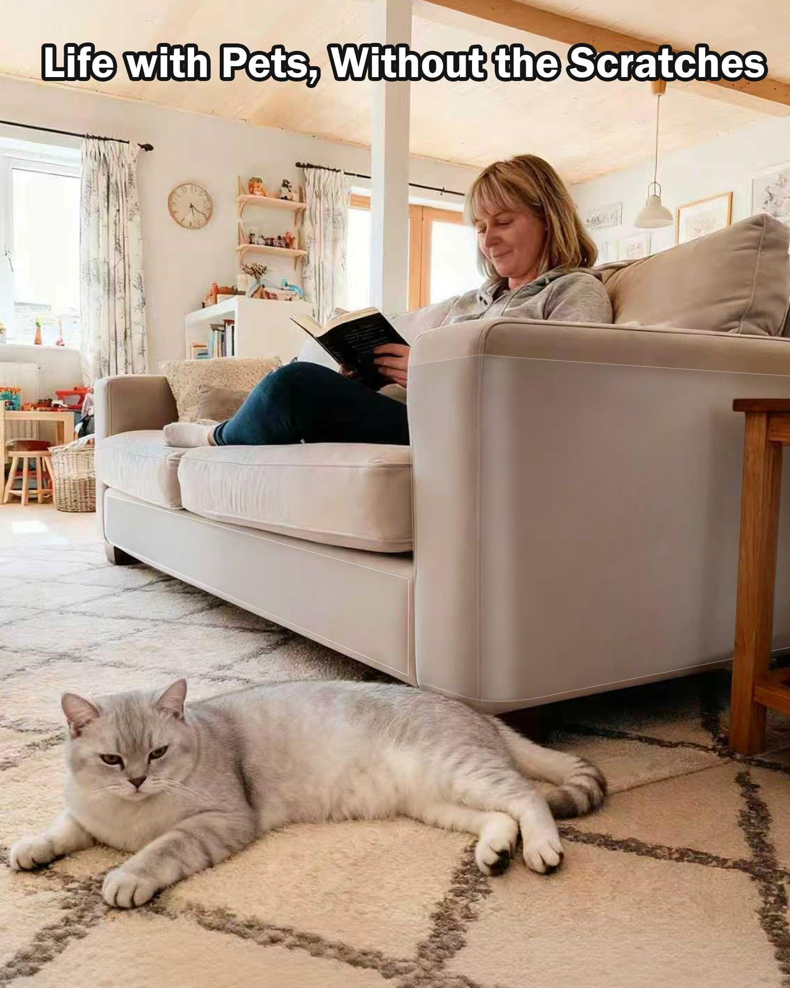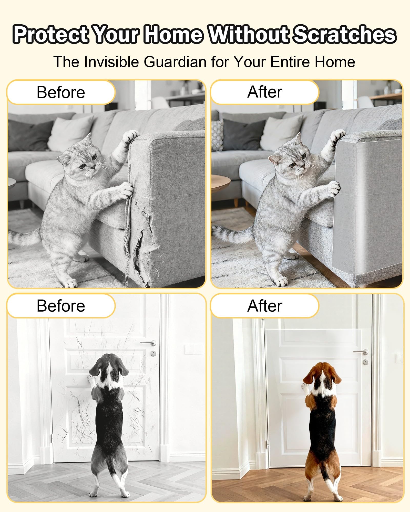 • SUPERIOR PET PROTECTION: Upgrade from cheap PVC! Our scratch protector uses a premium, thicker PET film that provides 2X durable, claw-resistant shield for your furniture. It effectively stops cat and dog scratches without the yellowing or cracking common with inferior materials, ensuring long-lasting, invisible protection for your valuable sofa, armchair, and doors.