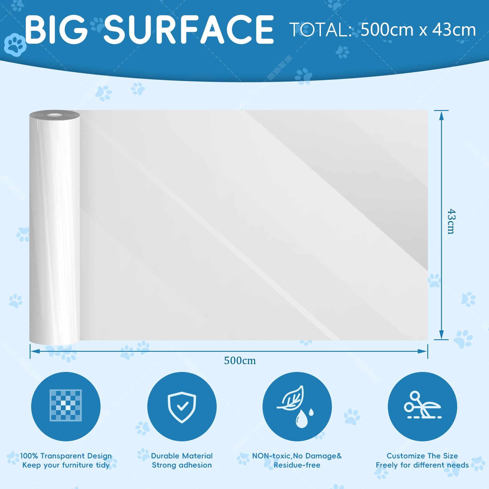 • [Wide Protection] This cat anti scratch tape is 5 meters long and 45cm wide. It can be cut into different sizes according to the areas of your furniture that need protection, and then attach to the spots where your cat or dog likes to scratch.