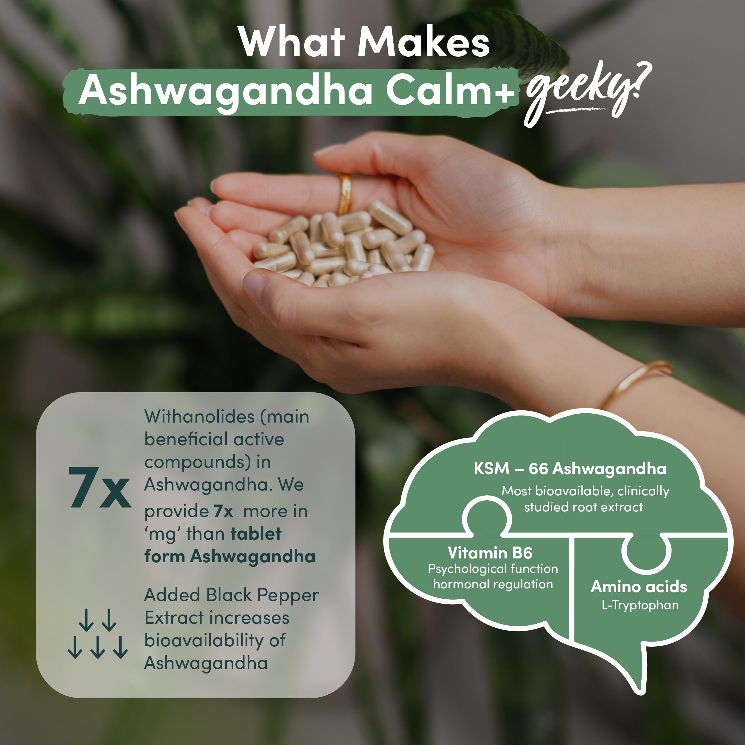 - Why Nutrition Geeks Ashwagandha: Not your ordinary ashwagandha supplement — this formula blends high-quality KSM-66 ashwagandha extract with L-Tryptophan, Vitamin B6, and black pepper for optimal absorption. 60 Capsules, one per day for a two month supply.