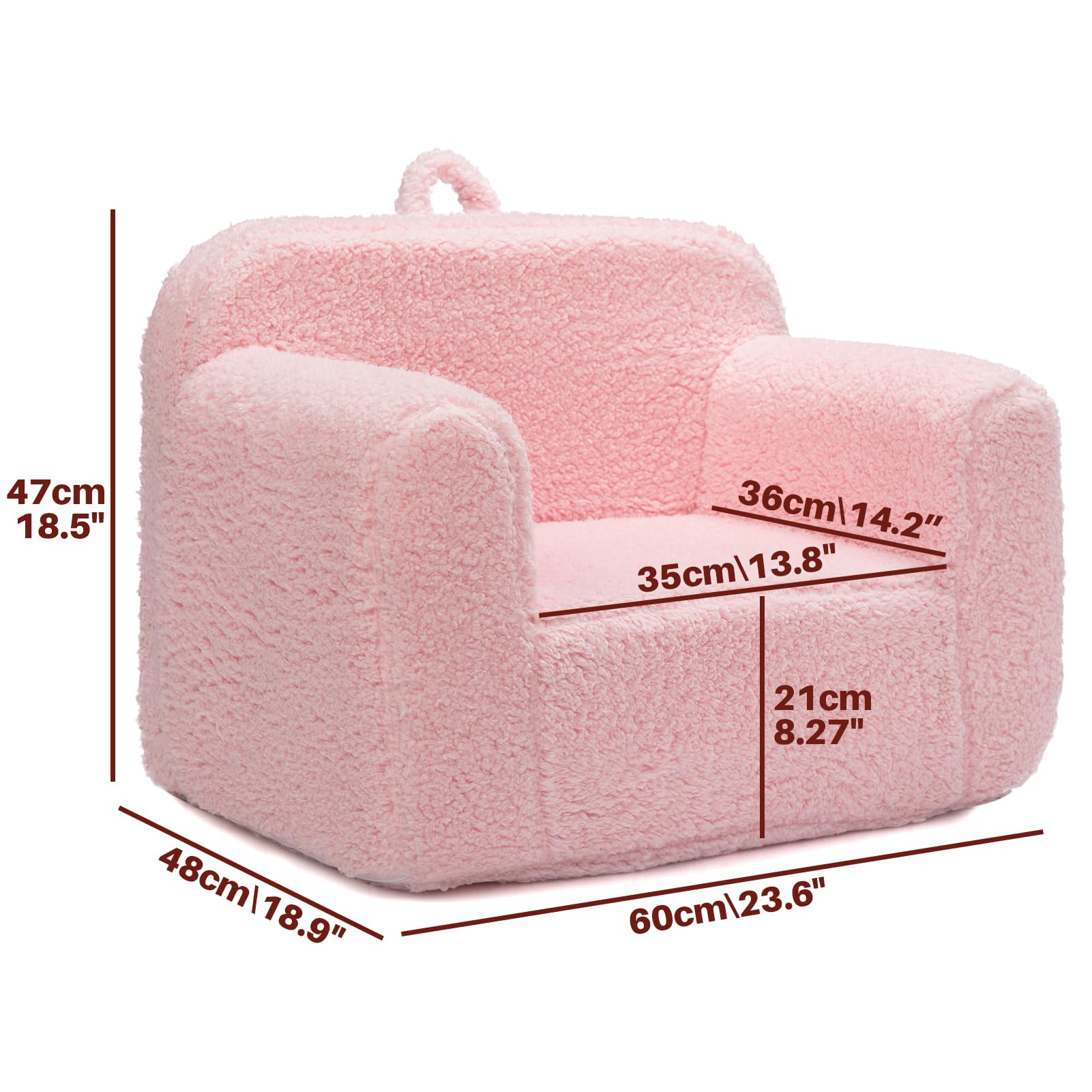 - Cozy Design & Safe: The toddler armchair cover is crafted from extra soft and durable Sherpa fabric, guaranteeing a soft and snug experience. Constructed with thick foam to withstand little feet jumping or climbing on it, no sharp corners or hard surfaces for child safety. The armrests are designed to provide sturdy support, mitigating any risk of tipping or rolling.