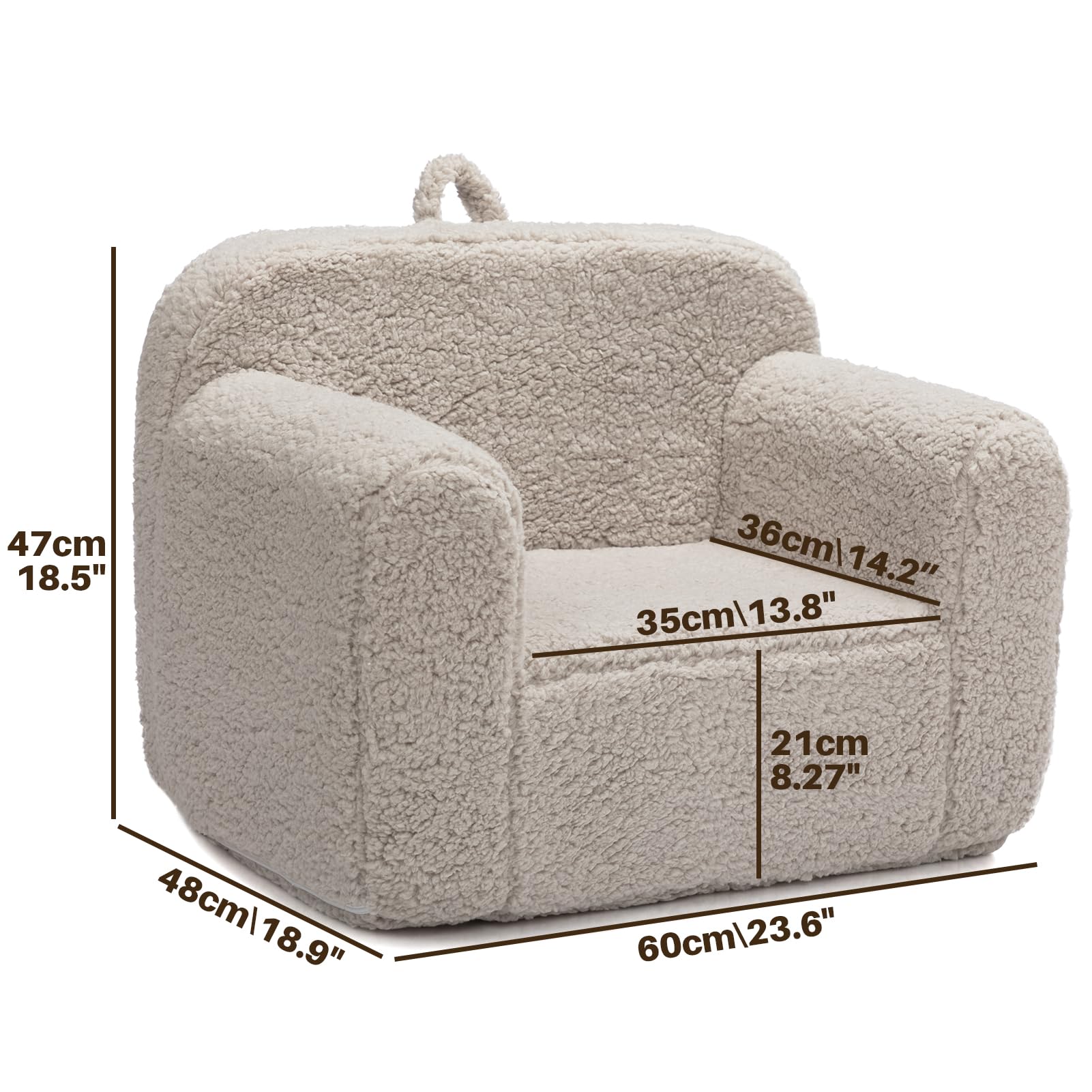 - Cozy Design & Safe: The toddler armchair cover is crafted from extra soft and durable Sherpa fabric, guaranteeing a soft and snug experience. Constructed with thick foam to withstand little feet jumping or climbing on it, no sharp corners or hard surfaces for child safety. The armrests are designed to provide sturdy support, mitigating any risk of tipping or rolling.
