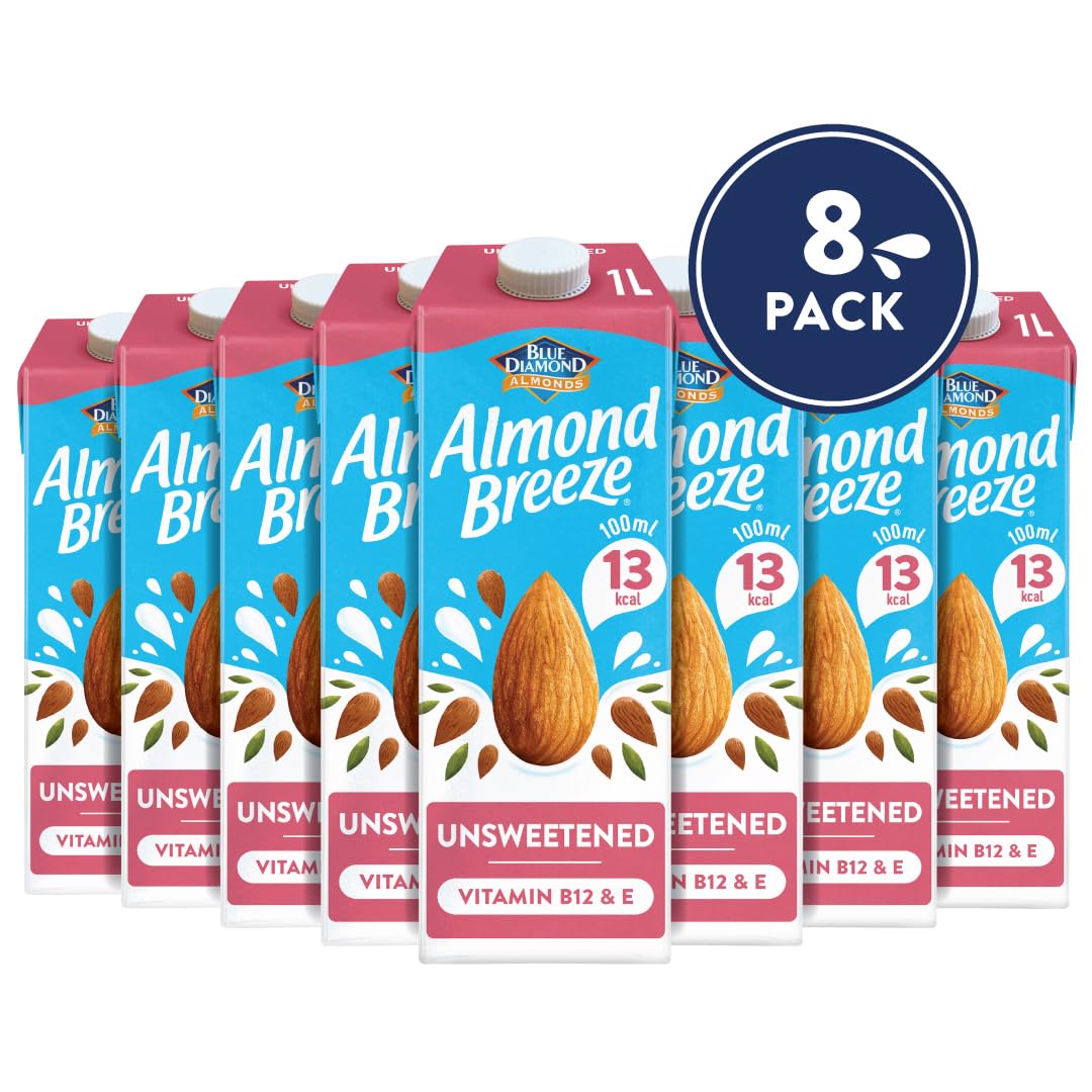 Blue Diamond Almond Breeze Unsweetened Almond Milk, 8 x 1L