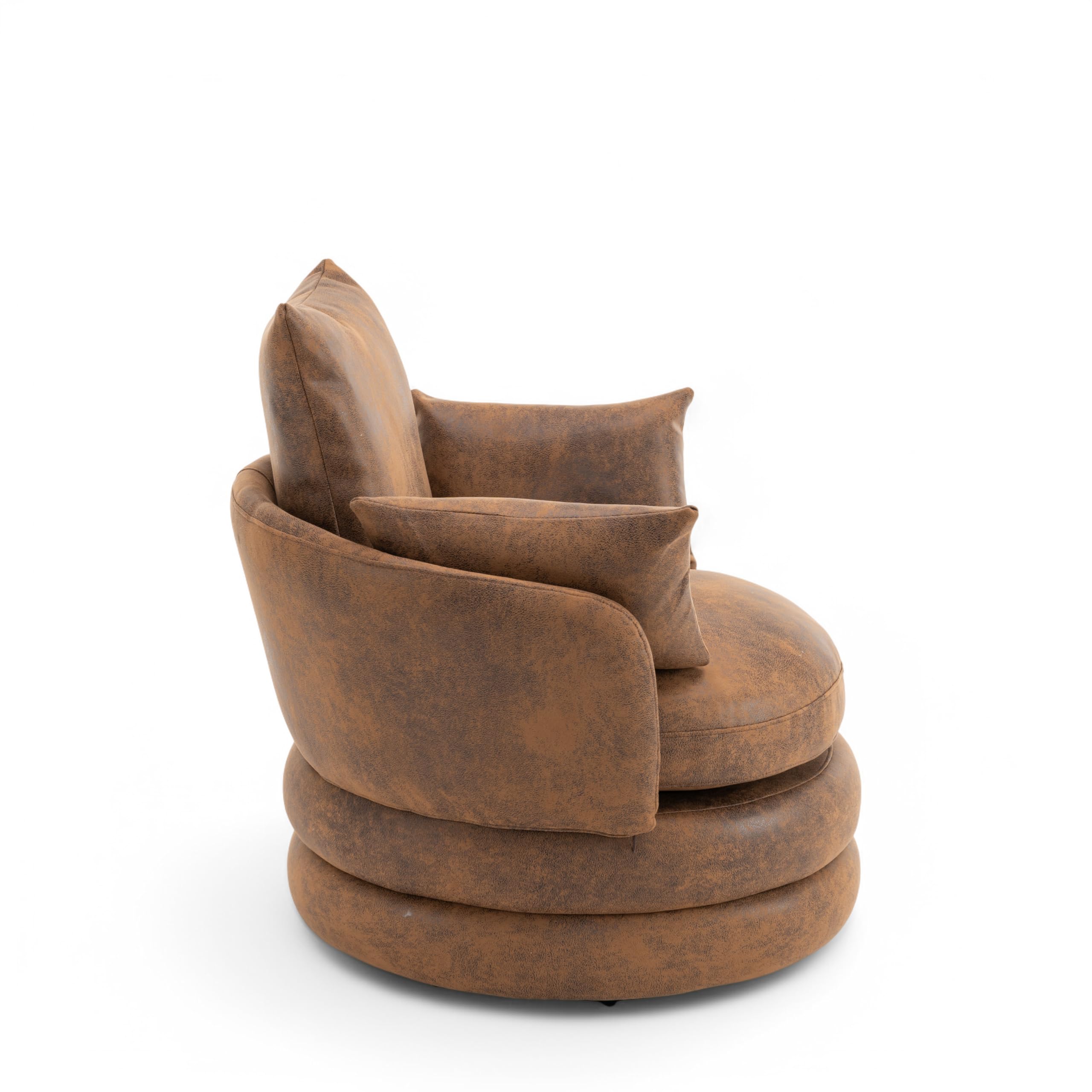 Brown Faux Leather Swivel Cuddle Chair – Snuggle Chairs for Adults, Swivel Accent Chair with Cushions, Cuddle Chairs for Living Room