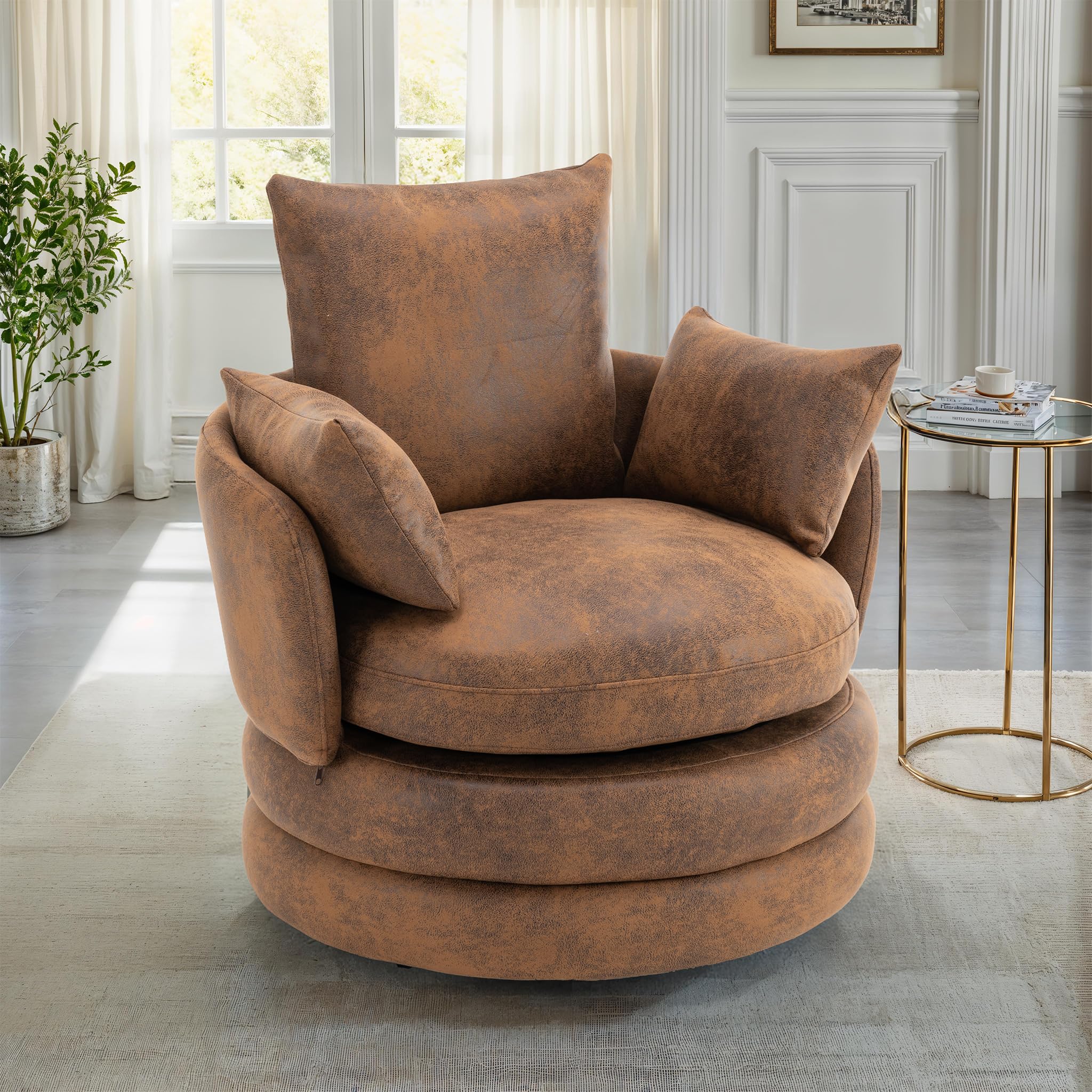 - Compact Swivel Design for Versatile Use: With a sculptural stacked form, this snuggle chair doubles as a swivel accent chair or cuddle chairs for living room. Ideal for modern homes, the brown armchair also works as a small swivel chair bedroom, corner chair, or bedroom accent chair.