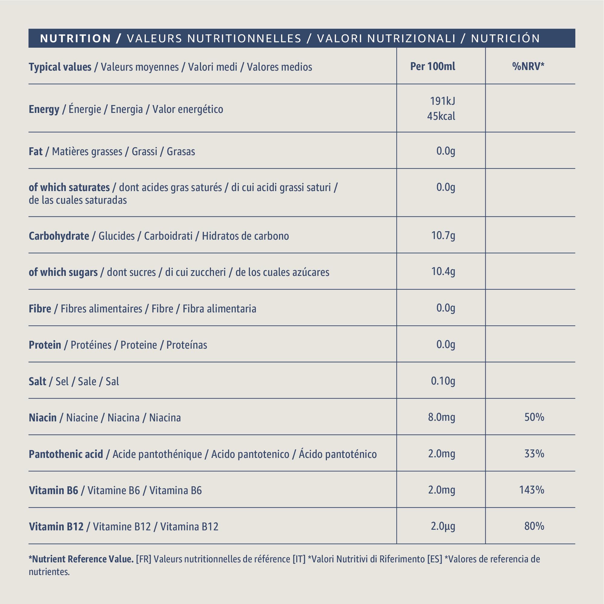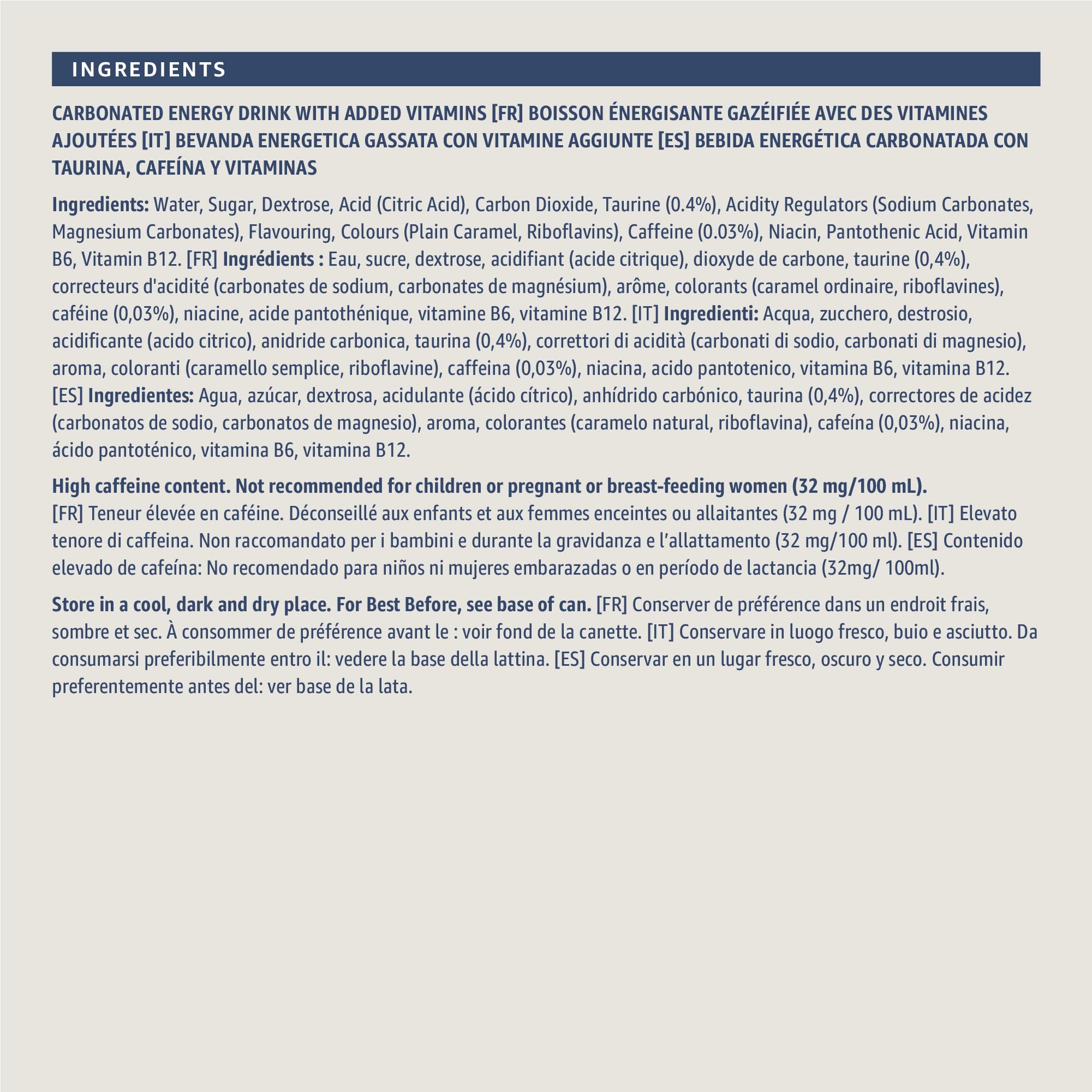 • Carbonated energy drink with added vitamins