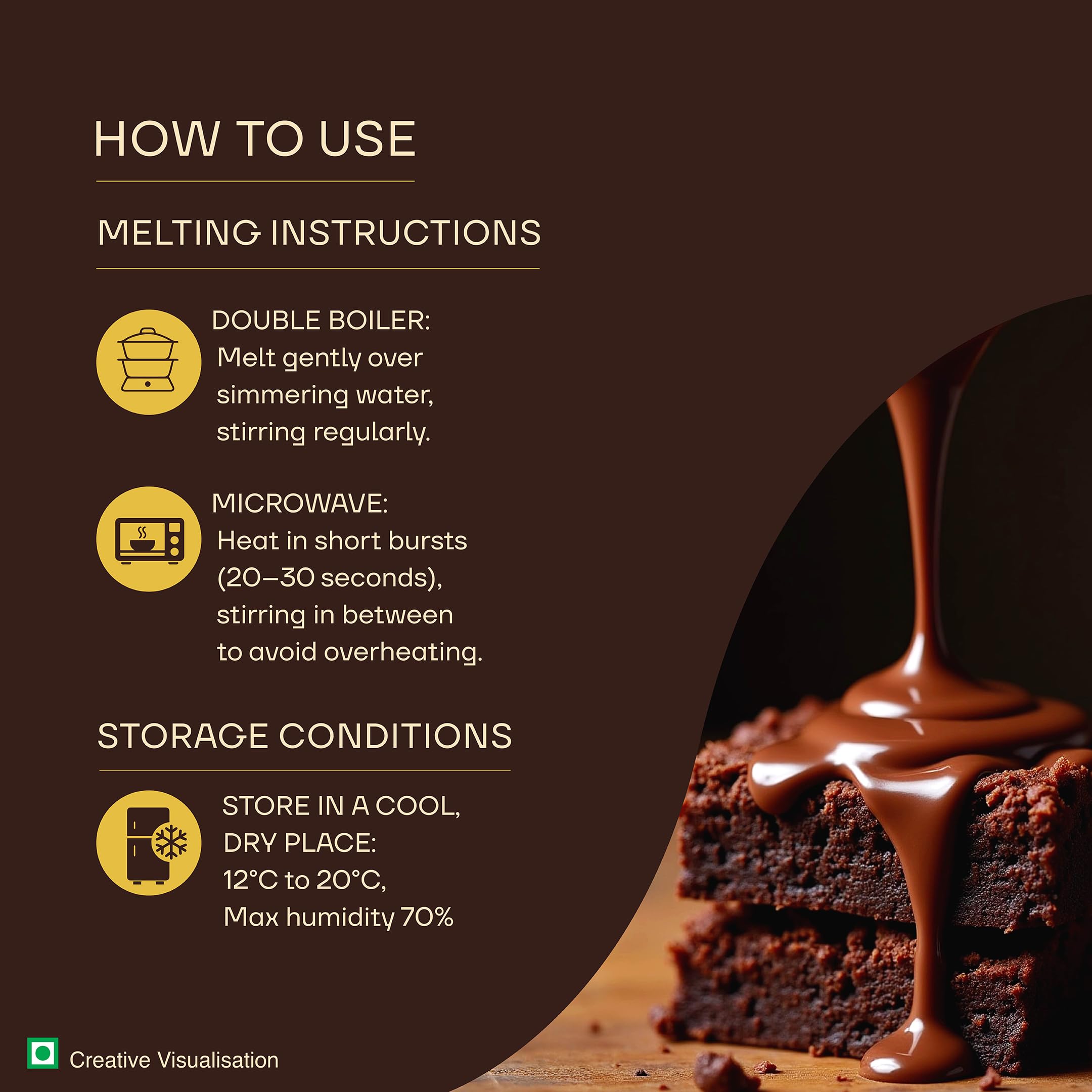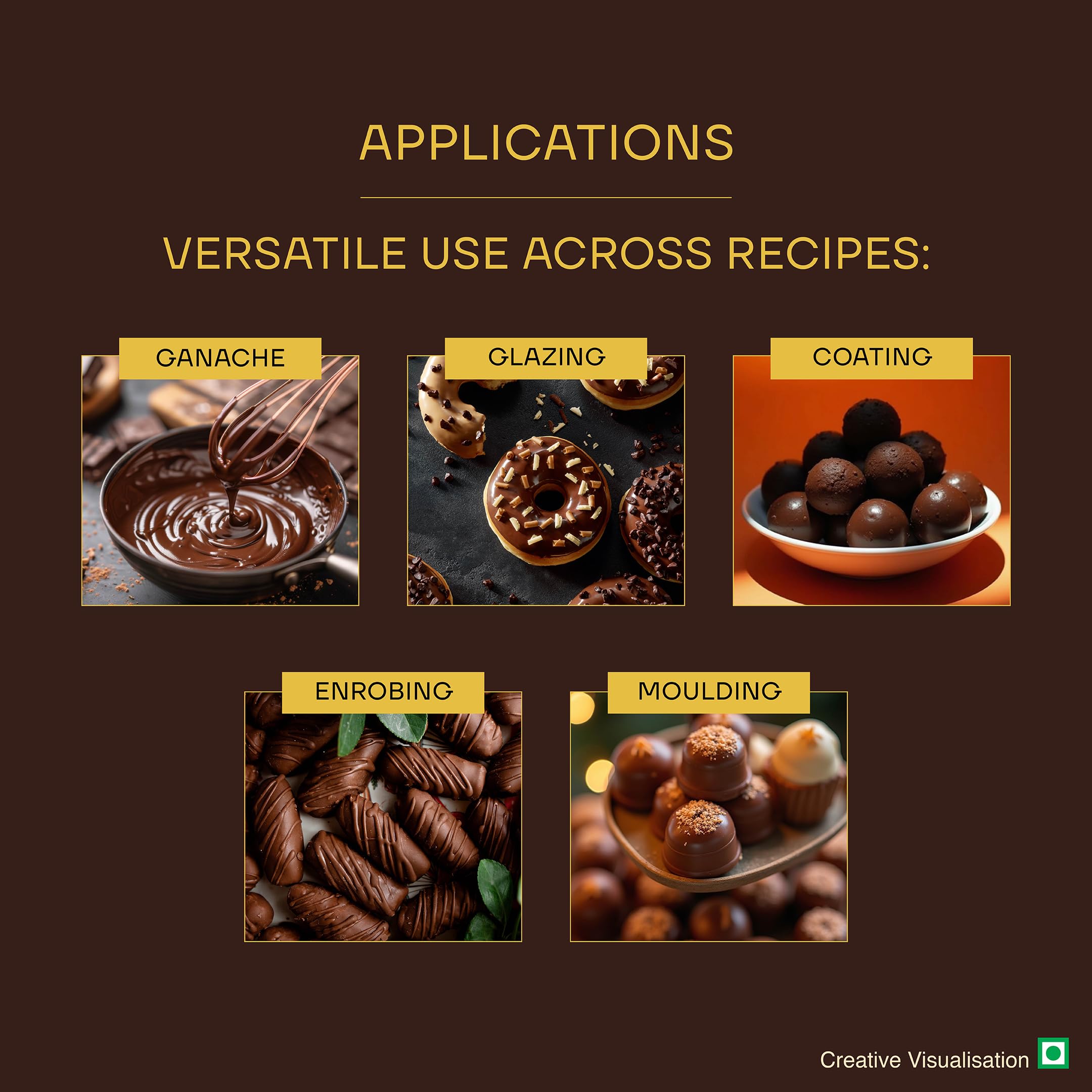 - Medium fluidity couverture suitable for a wide range of patisserie, confectionery and baking applications