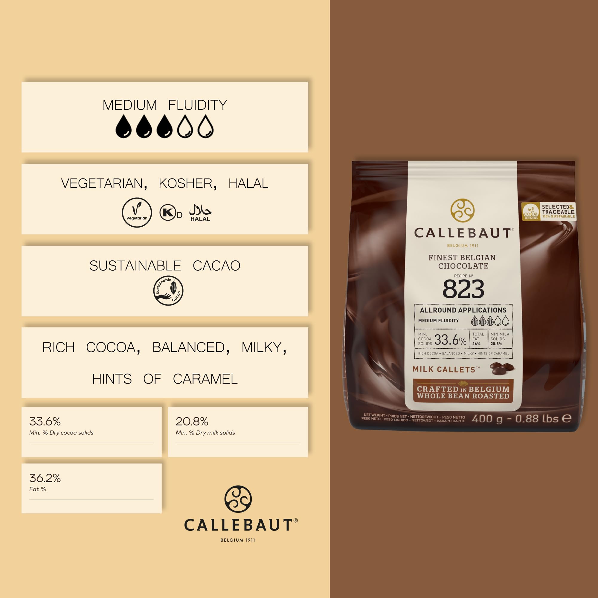 Callebaut 823 Finest Belgian Milk Chocolate Couverture Callets 33.6% Cocoa 400g