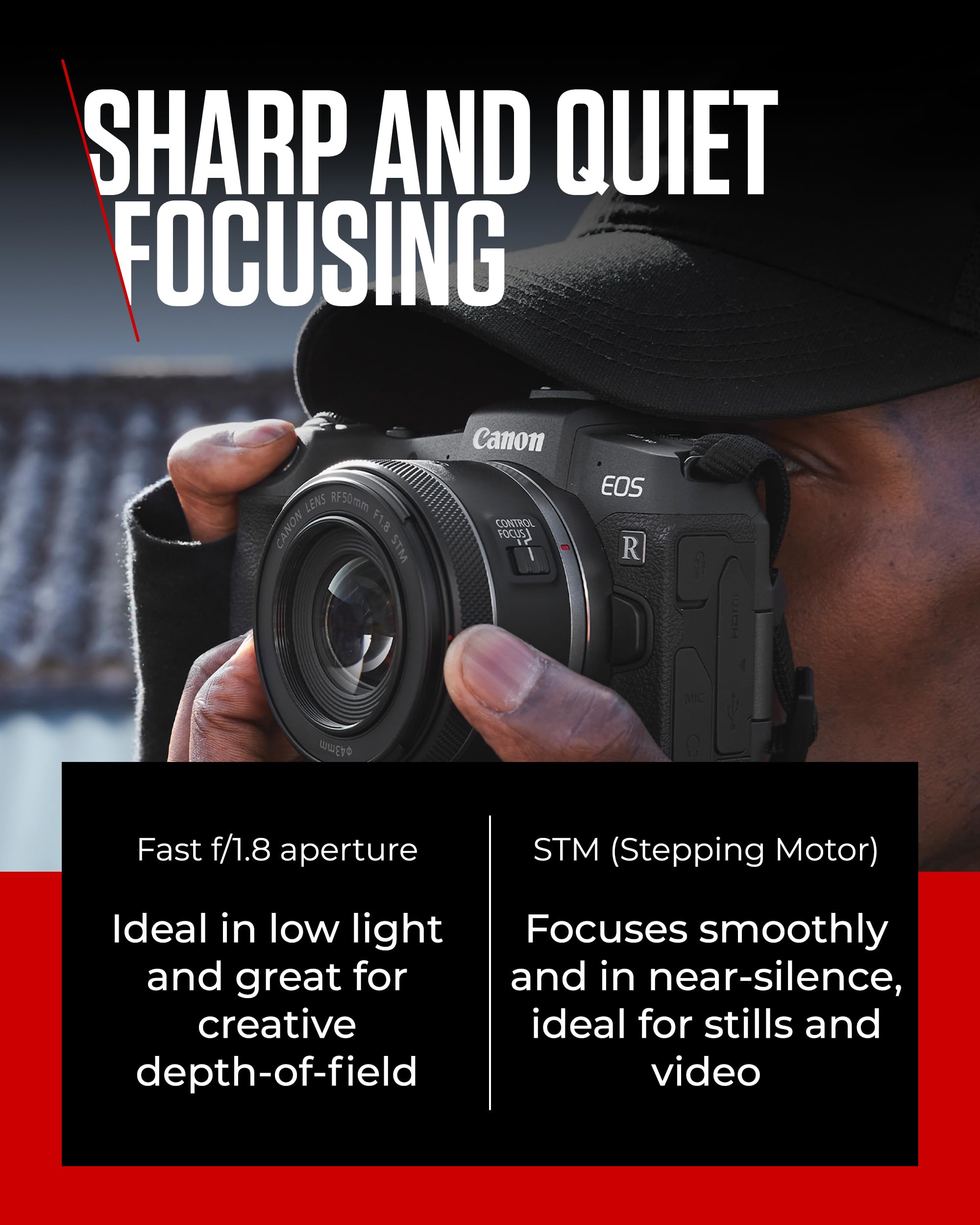 Canon RF 50mm F1.8 STM Lens | Compact and Lightweight, Fast F1.8 Aperture, Compatible with all Canon EOS R Series Cameras, Black