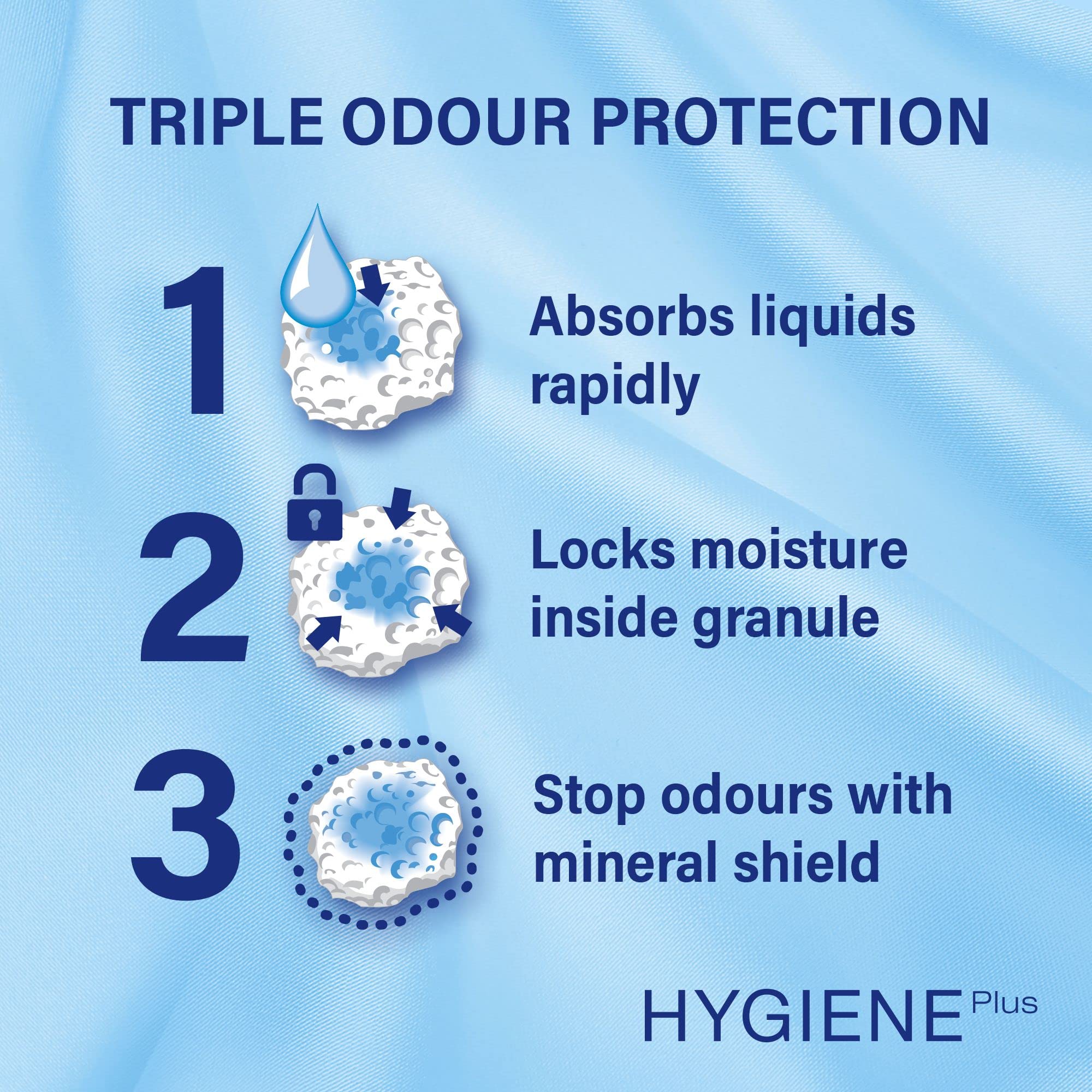 - LIQUID LOCKING TECHNOLOGY - Effectively locks in liquids to maintain a dry and hygienic litter tray, preventing mess and contamination.