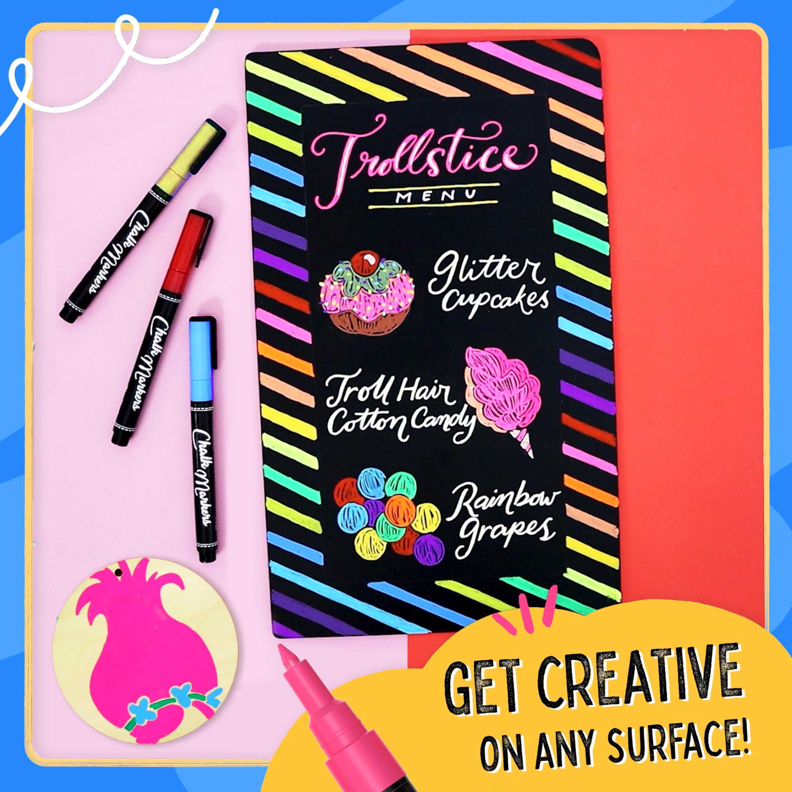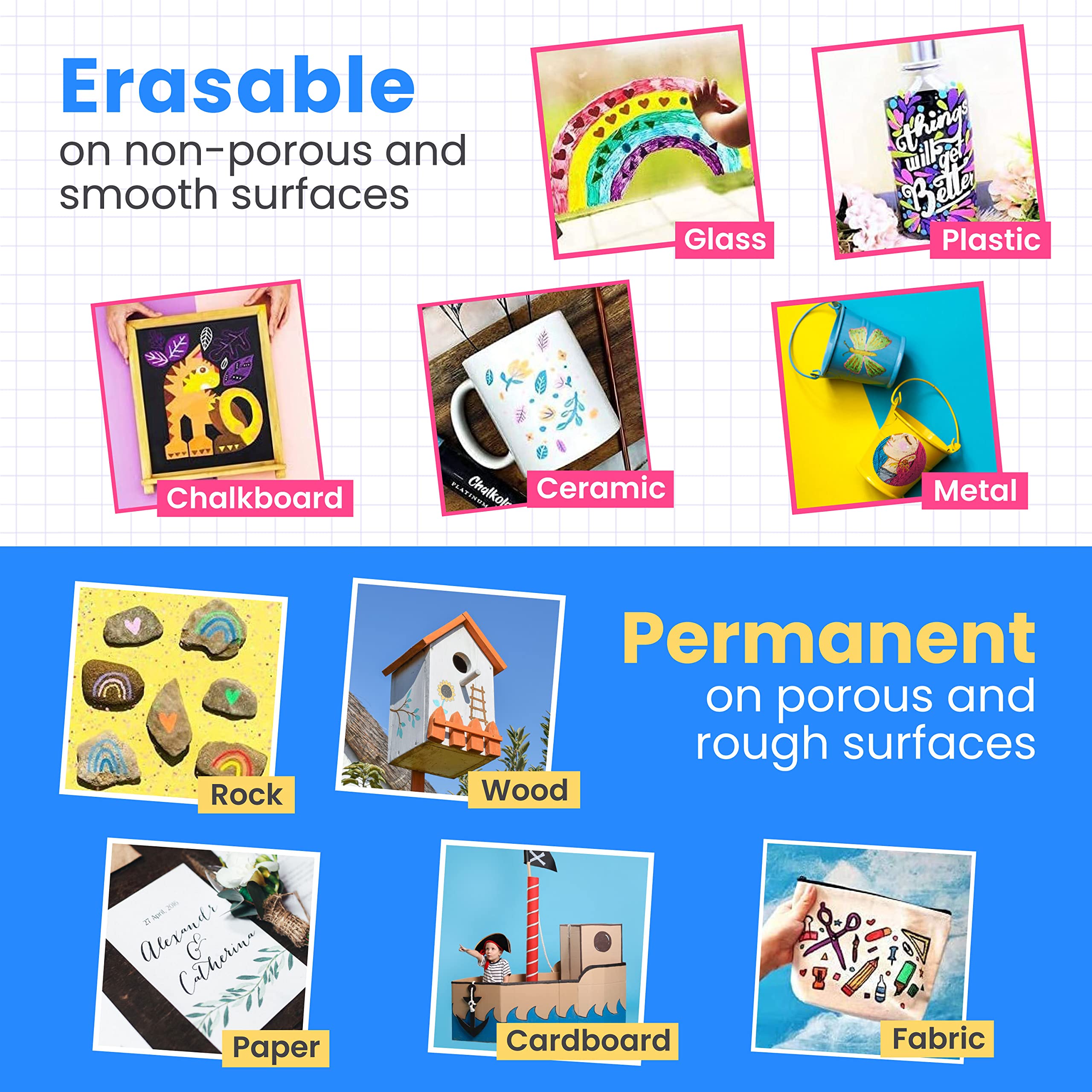 - Works on All Surfaces - These chalk markers for chalkboard are easily erasable from non-porous surfaces like glass, mirrors & LED boards. Create temporary designs that wipe away or permanent artwork on porous surfaces