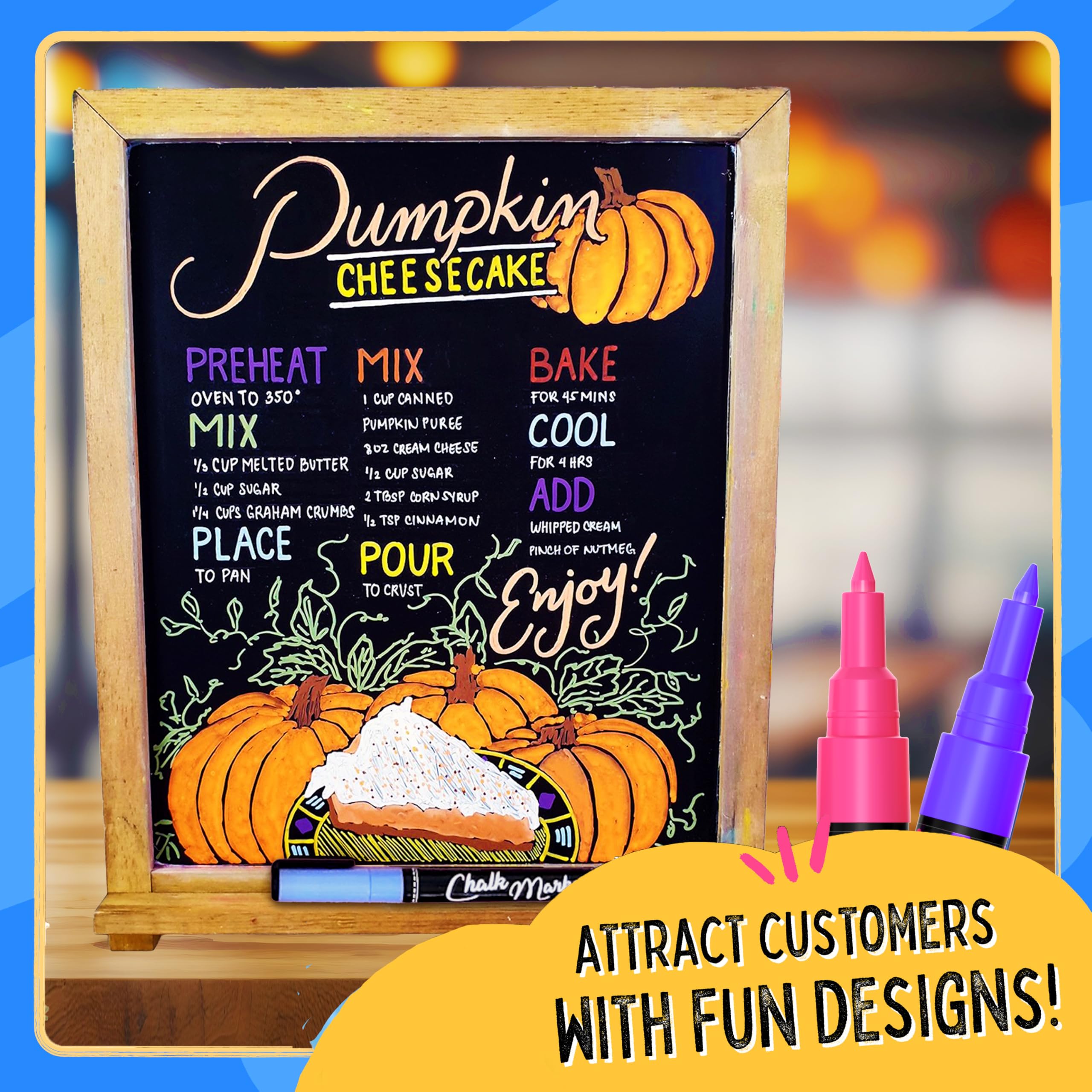 - Designed for Creative Projects - From organized teaching materials to fine art & decorations. These chalk markers fine tip work beautifully on black board and give every creative mind professional results