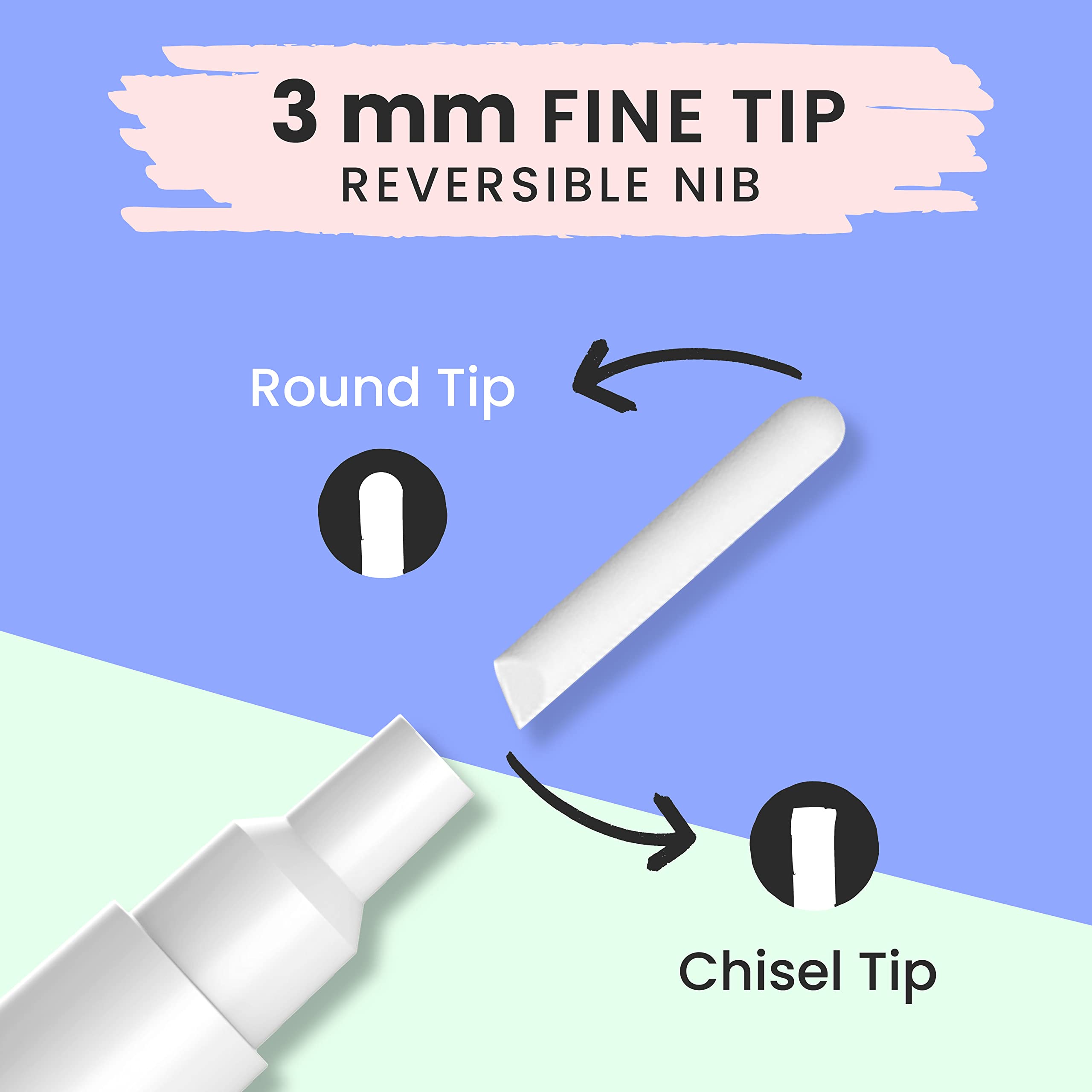 Chalkola White Chalk Pens - White Dry Erase Liquid Chalk Pens for Chalkboard, Blackboard, Window, Bistro, Car Glass, Board, Signs - 3mm Reversible Bullet & Chisel Point