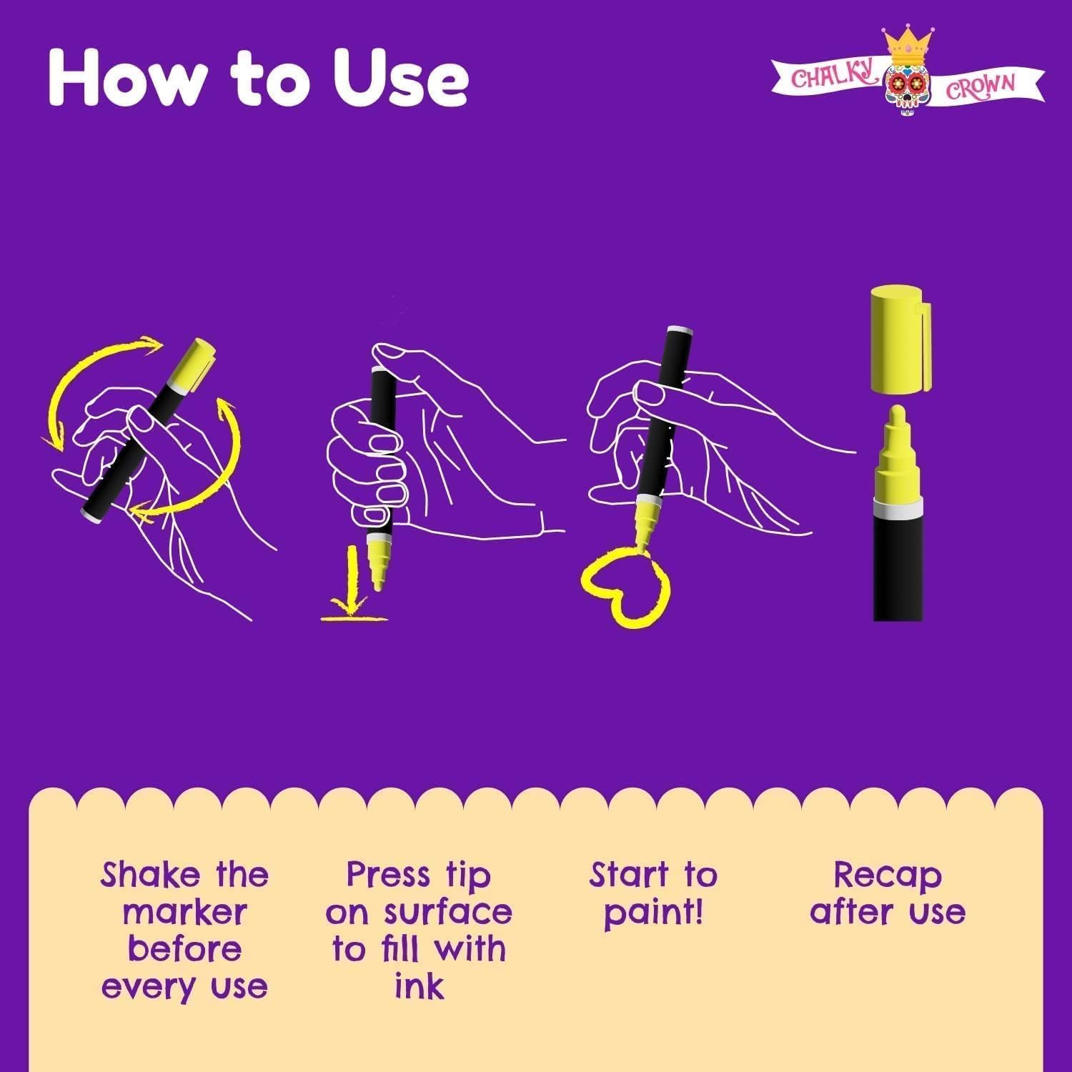 - 🌈 Bright Colors - Comes with 4 extra bold chalk markers to last a long time