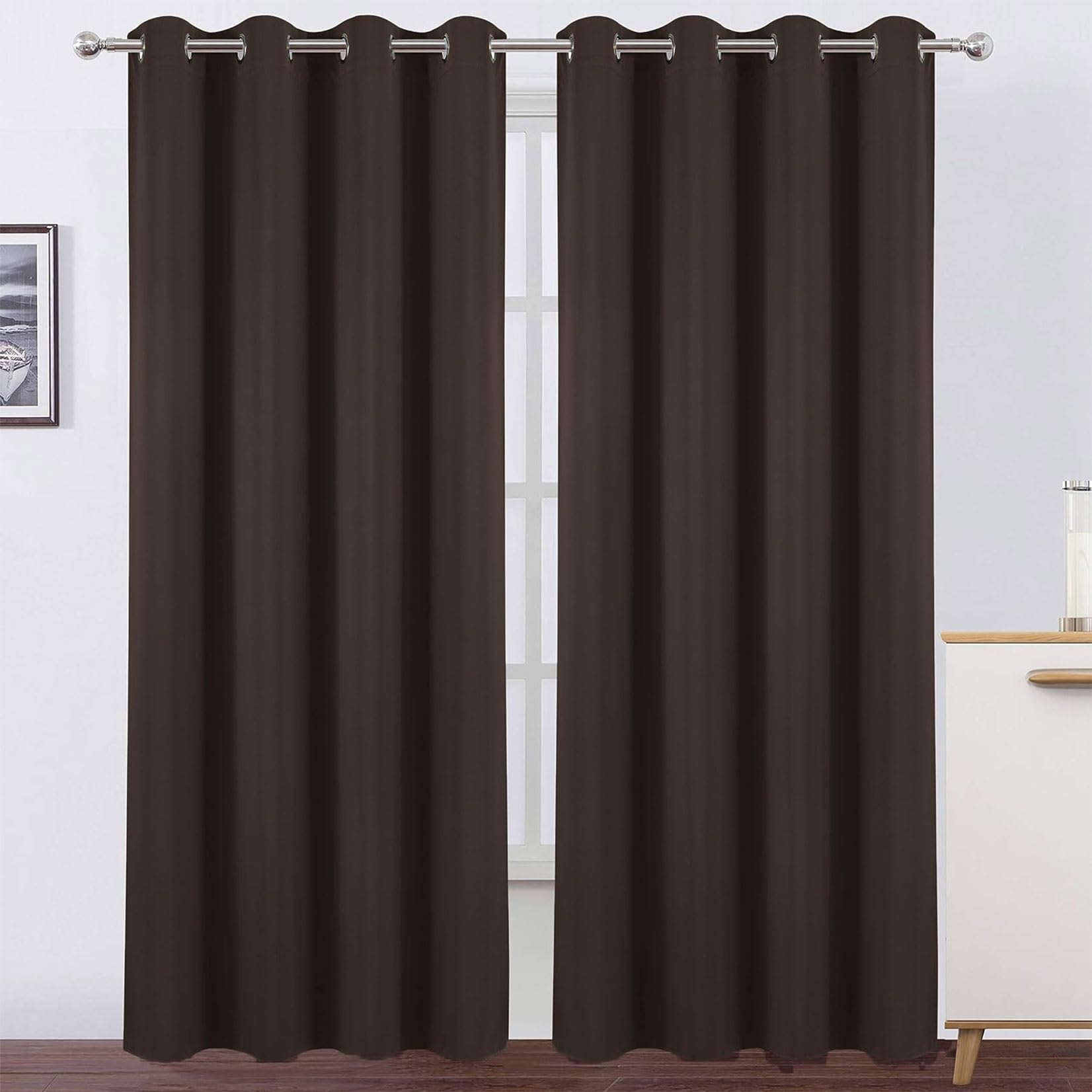 CHENMIAO Pencil Pleat Blackout Curtains 70 x 150 cm Super Soft Texture Eyelet Wave Curtains, Eyelet Curtains for Living Room Bedroom Windows Nursery, Set of 2 with Eyelets, Brown