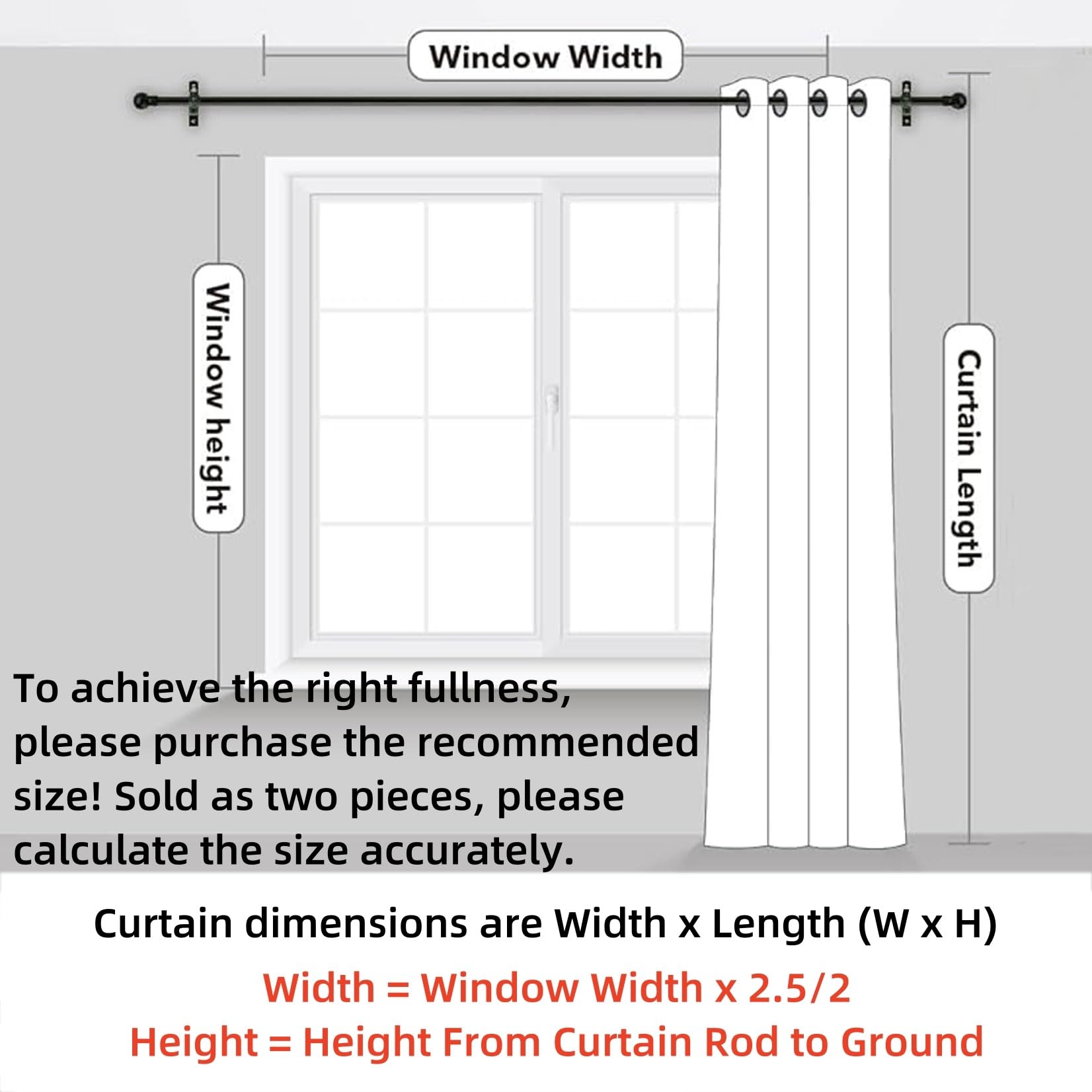 - Size Selection: 📏Each panel measures (width x drop) (2 per pack). To achieve the right fullness for best results, we recommend purchasing the following measurements (Width = window width x 2.5 divided by 2, Height = height from curtain rod to floor)📏