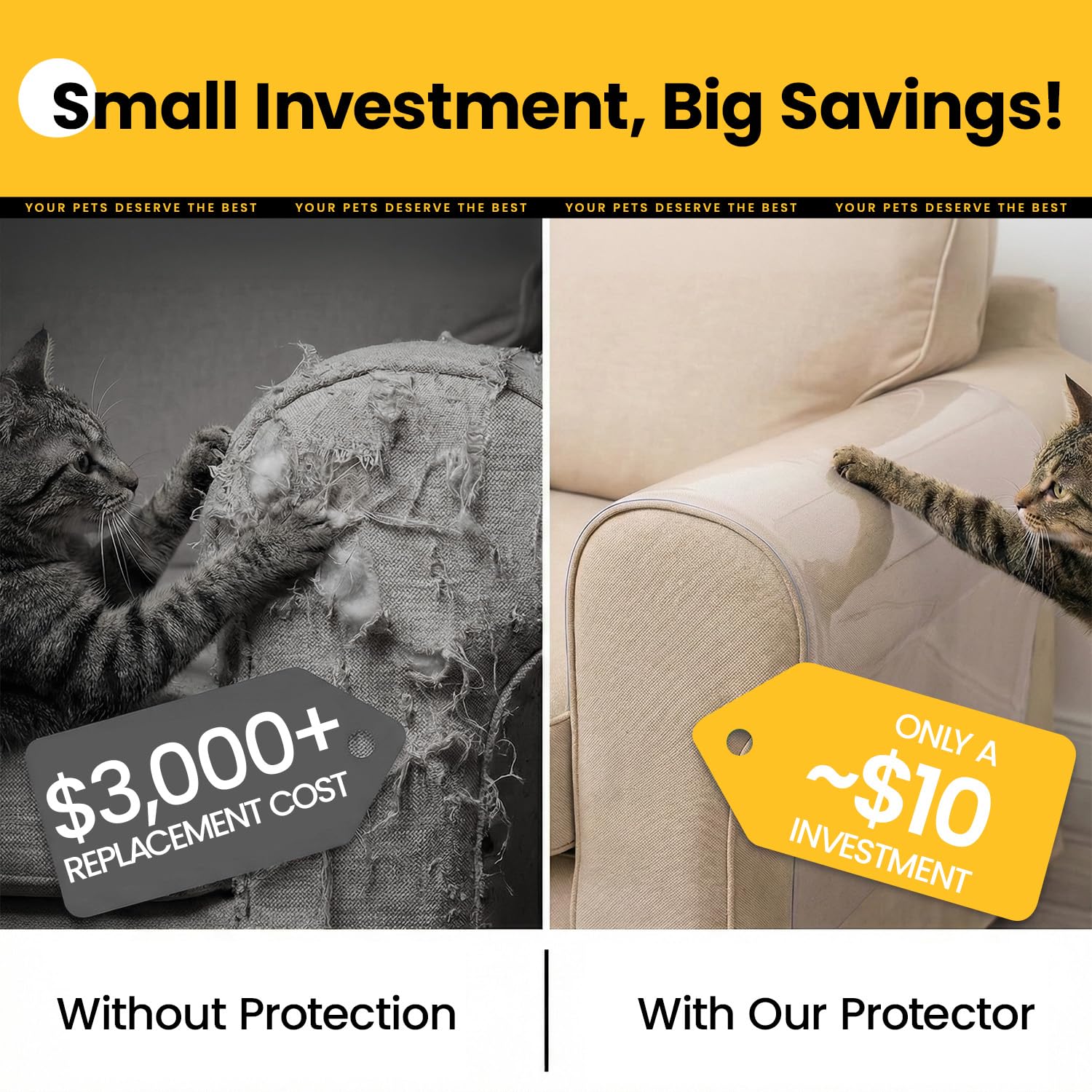 - 【Invisible Shield for Your Sofa】Preserve your furniture’s beauty with Conlun’s cat scratch furniture protectors. This 10-pack set offers essential coverage for your main sofa. Made from 100% transparent, 0.12mm thick PVC, these guards are virtually invisible, blending seamlessly with your upholstery to stop cat claws without hiding your decor.