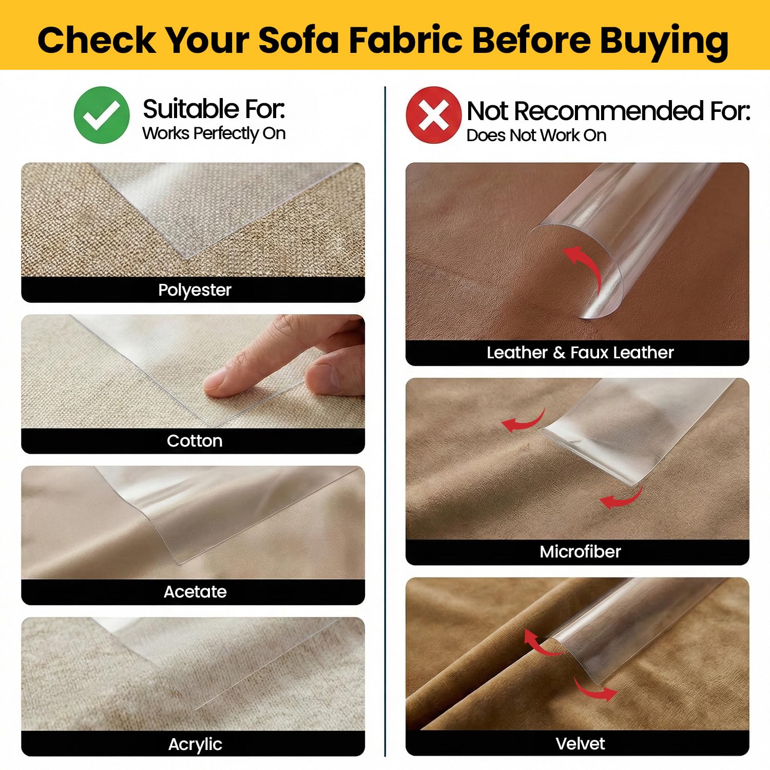 - 【Fabric Furniture Specialist】Safe, non-toxic, and residue-free. Specifically designed for fabric and upholstered furniture. Please Note: Not recommended for leather, faux leather, or velvet surfaces as the adhesive may react differently. Always test a small area first.