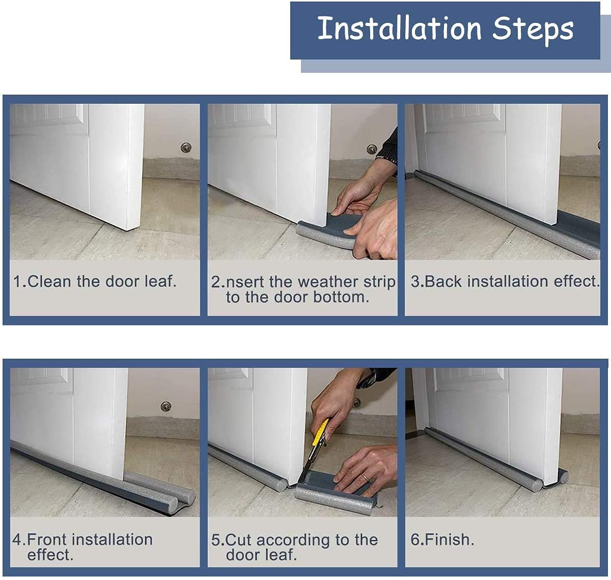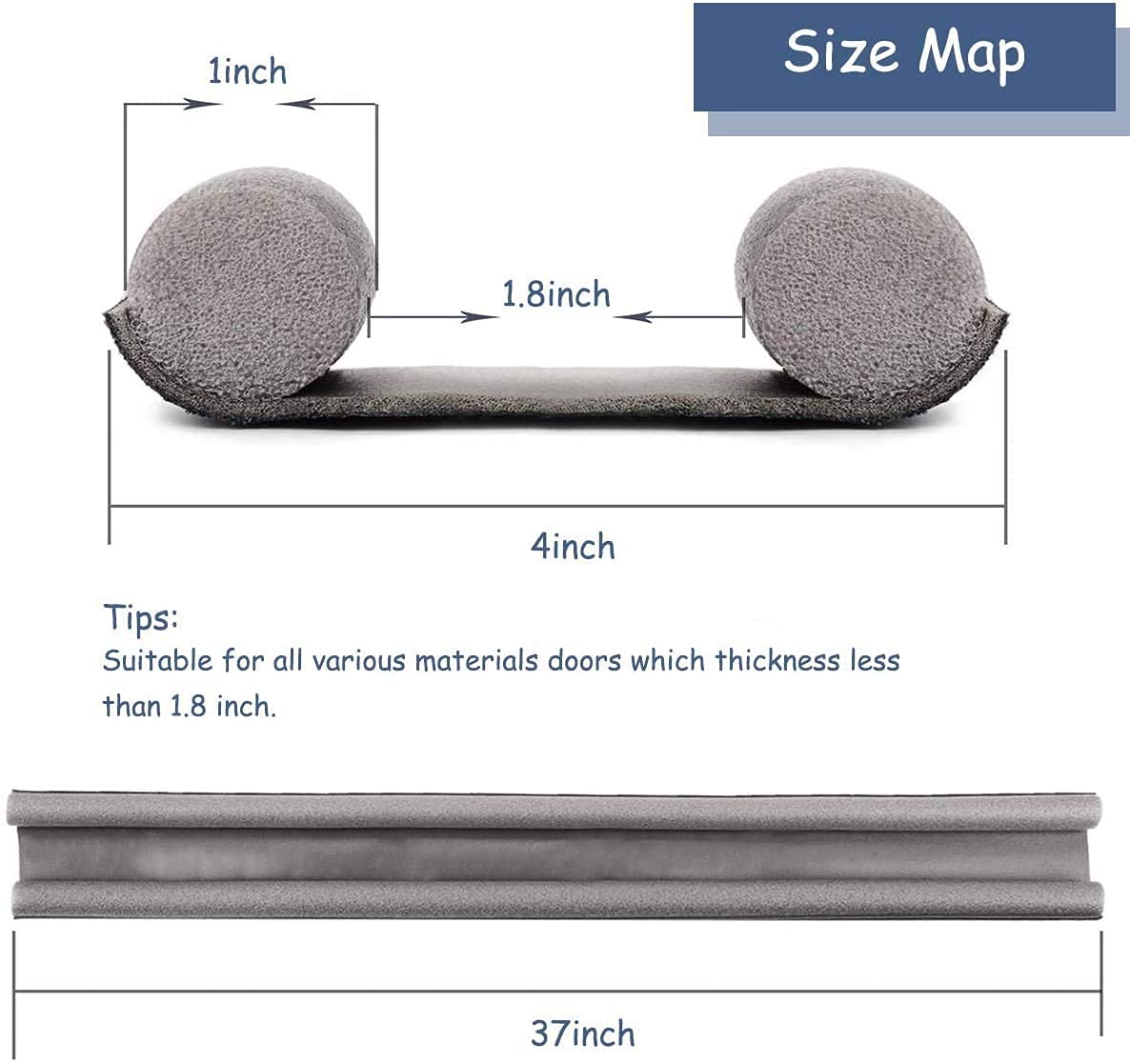- ✅【UNIQUE DESIGN】- The Door Draft Stopper is designed to fit doors up to 37 inches in length. The foam tubes and vinyl can be cut down to fit narrow doors, while the jumbo 1-inch diameter foam tubes are perfect for blocking extra-large gaps under your door. It's suitable for use on your front door, back door, garage entry door, bedroom door, and more.