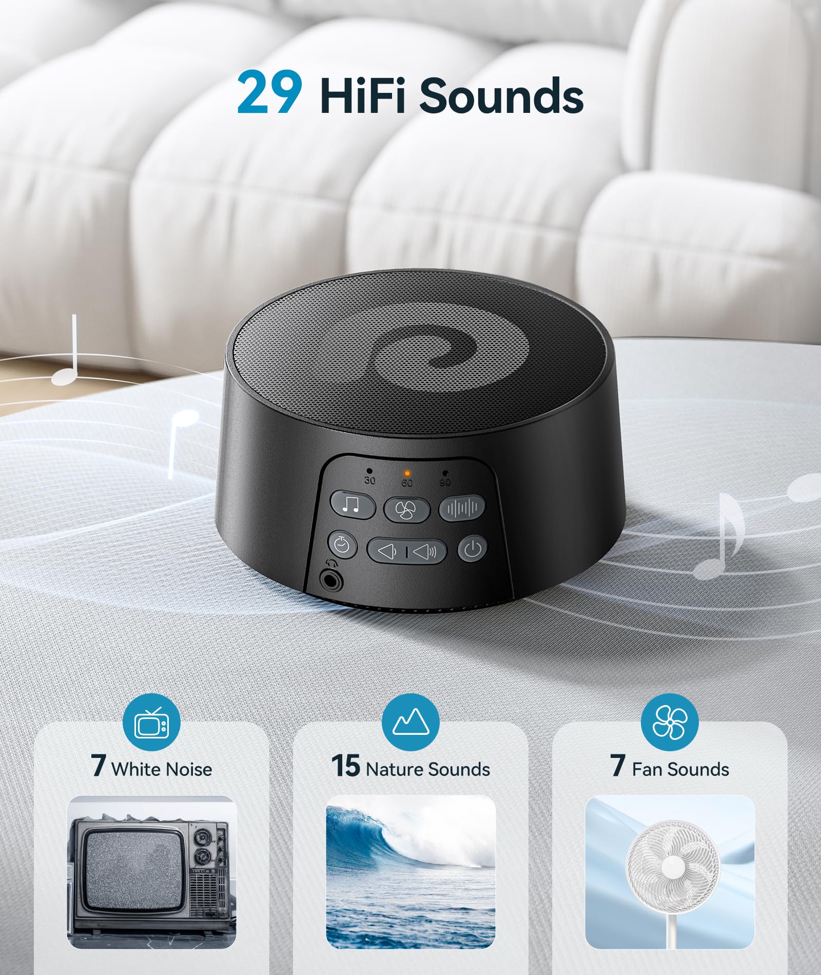 - INCREDIBLE SOUND QUALITY - Experience nature's wonders in seconds with our advanced stereo speaker that offers extraordinary clarity with our D3 pro white noise machine, giving you a superior comforting sound feast. Choose from our 29 high-quality sounds, including 7 white noise, 7 fan sounds, and 15 nature sounds (bird, sea wave, gentle surf, and more) for a calming sleep routine for babies and the whole family.