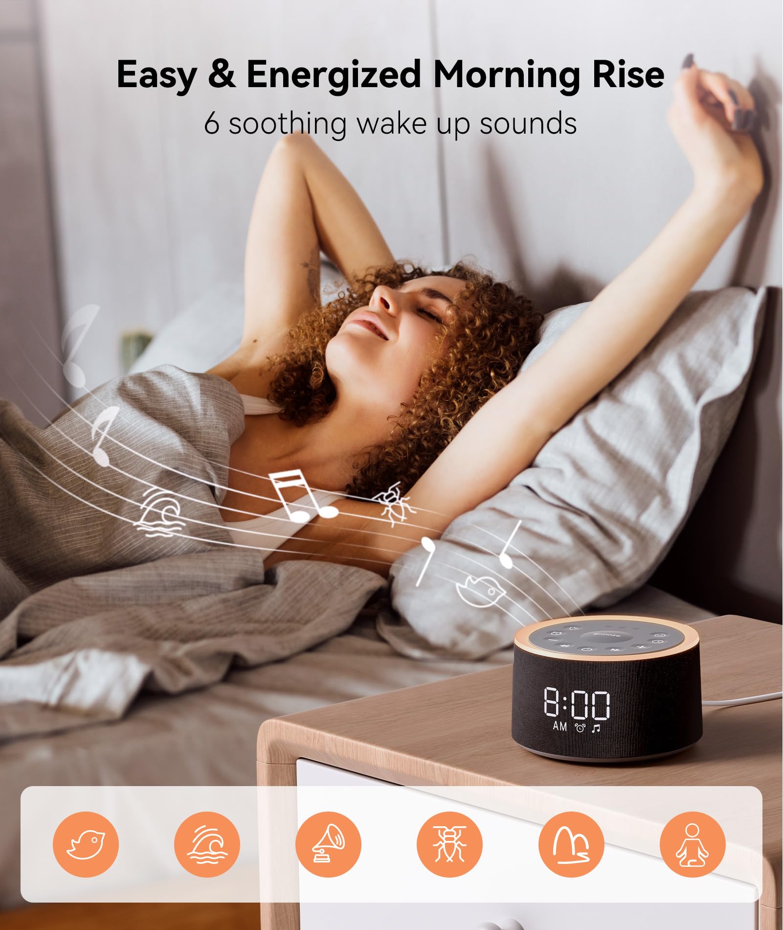 - ๐ช๐ฎ๐ธ๐ฒ ๐จ๐ฝ ๐ก๐ฎ๐๐๐ฟ๐ฎ๐น๐น๐ - Choose from 6 gentle wake up sounds (birds, sea waves, healing sounds, beeep sounds, stream, meditation) that gradually rouse you from slumber. Not ready to get up? No worries! The sound machine alarm clock's snooze button gives you 9 extra minutes of blissโjust enough for one last dream.