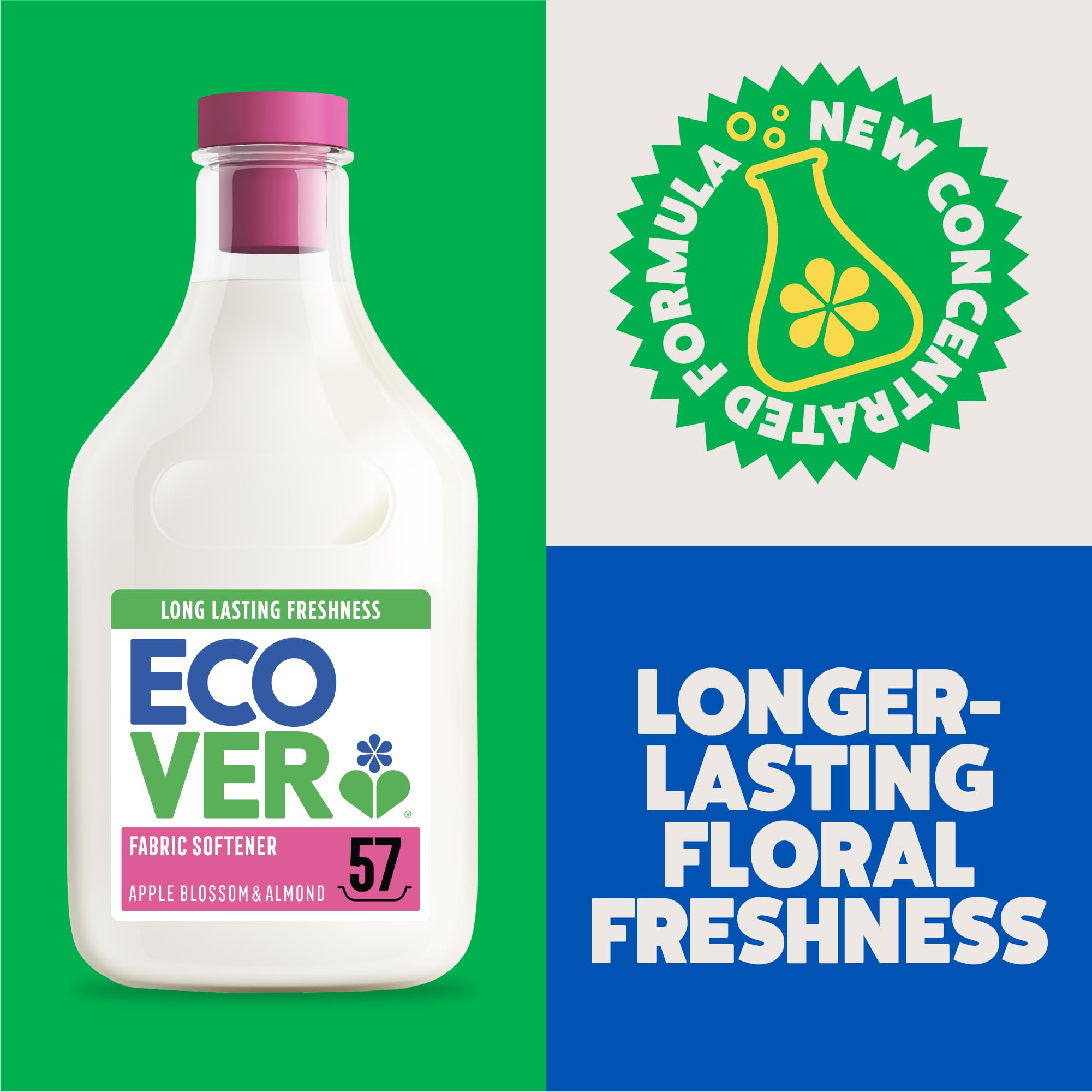 Ecover Concentrated Fabric Softener, Fabric Conditioner to Soften Your Clothes, Fresh Apple Blossom & Almond Scent 1 x 57 Washes, 1 x 1.43L