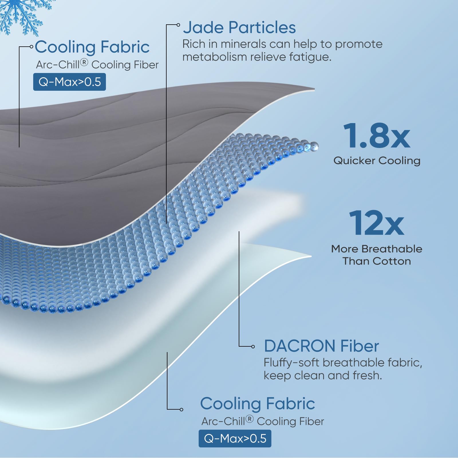 - ❄️ 【Arc-Chill 3.0 Cooling Technology】Elegear Cooling Duvet is made of upgraded Japanese Arc-chill 3.0 Q-Max 0.5 cooling fabric, which quickly absorbs body heat and reduces skin temperature by 2-5°C. (Other cooling fibres have a Q-Max of only 0.2). Particularly suitable for hot sleepers and night sweats, this cooling duvet will keep you cool all night long, even on hot summer days. It takes time for a quilt to dissipates heat, so opening air conditioners and fans can add cooling.