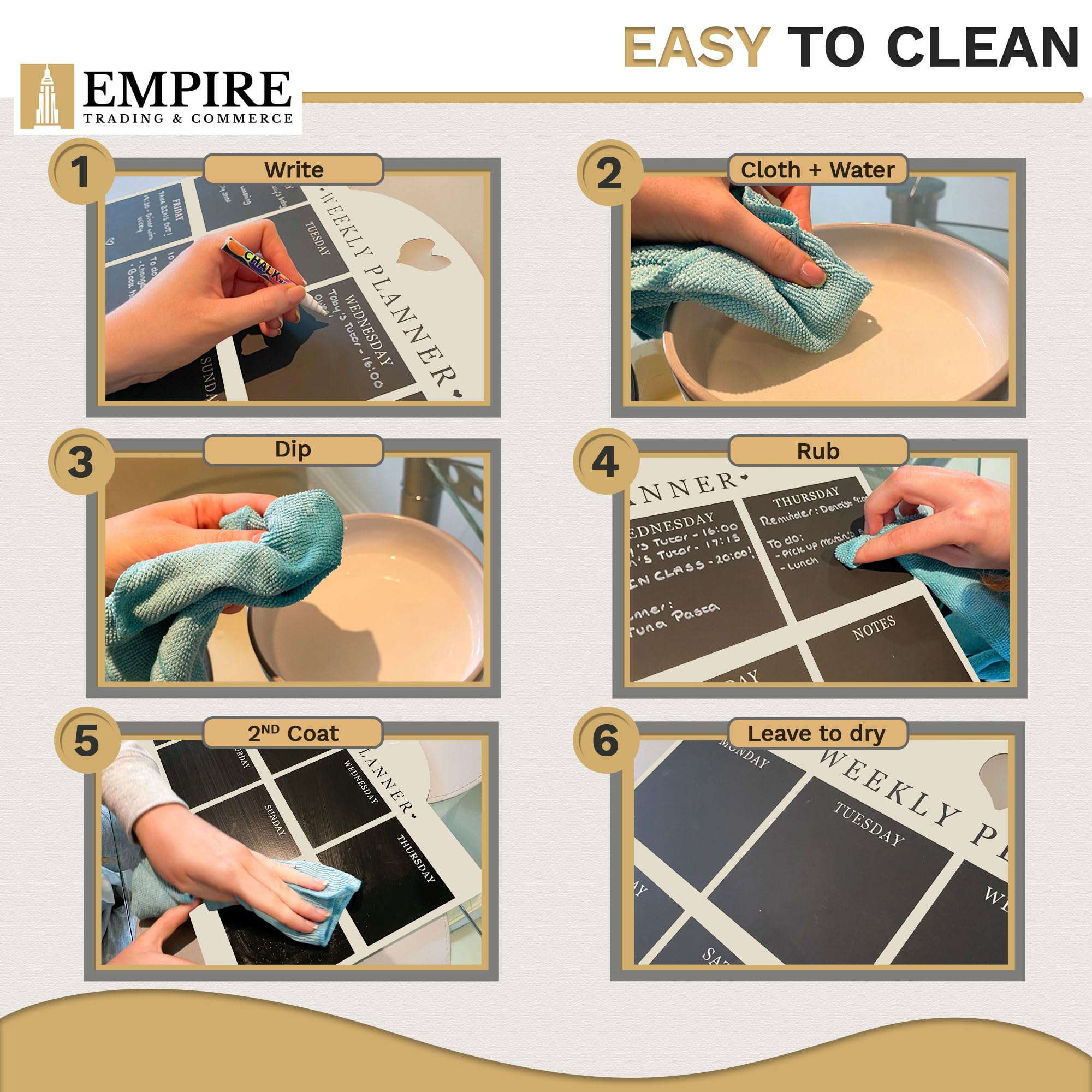 - EASY TO WIPE OFF: The Empire weekly planner is made of dry erase film. This menu chalkboard monthly calendar can be cleaned up with ease. This student planner can be easily cleaned, dip the cloth into the water, squeeze it and then wipe the board