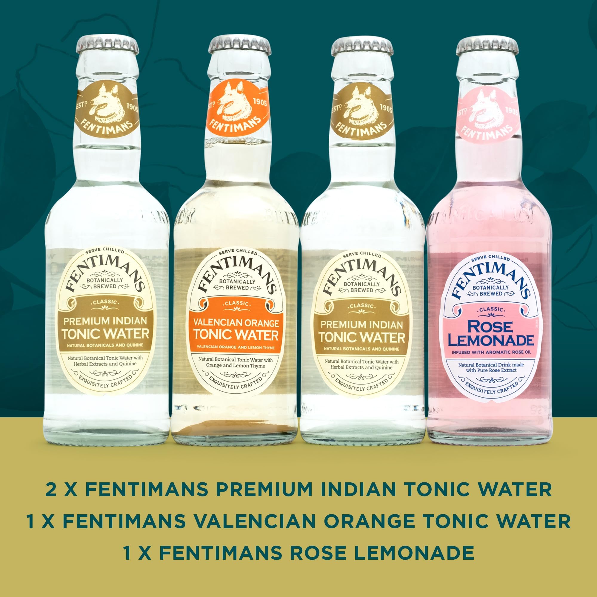 - 4 Fentimans premium mixers: Gin and tonic gift set; for the perfect Gin & Tonic add 1 part Gin to 3 parts Tonic, serve over plenty of ice & Garnish! All our mixers are exquisitely crafted using the finest botanicals - the perfect partner for your spirits!