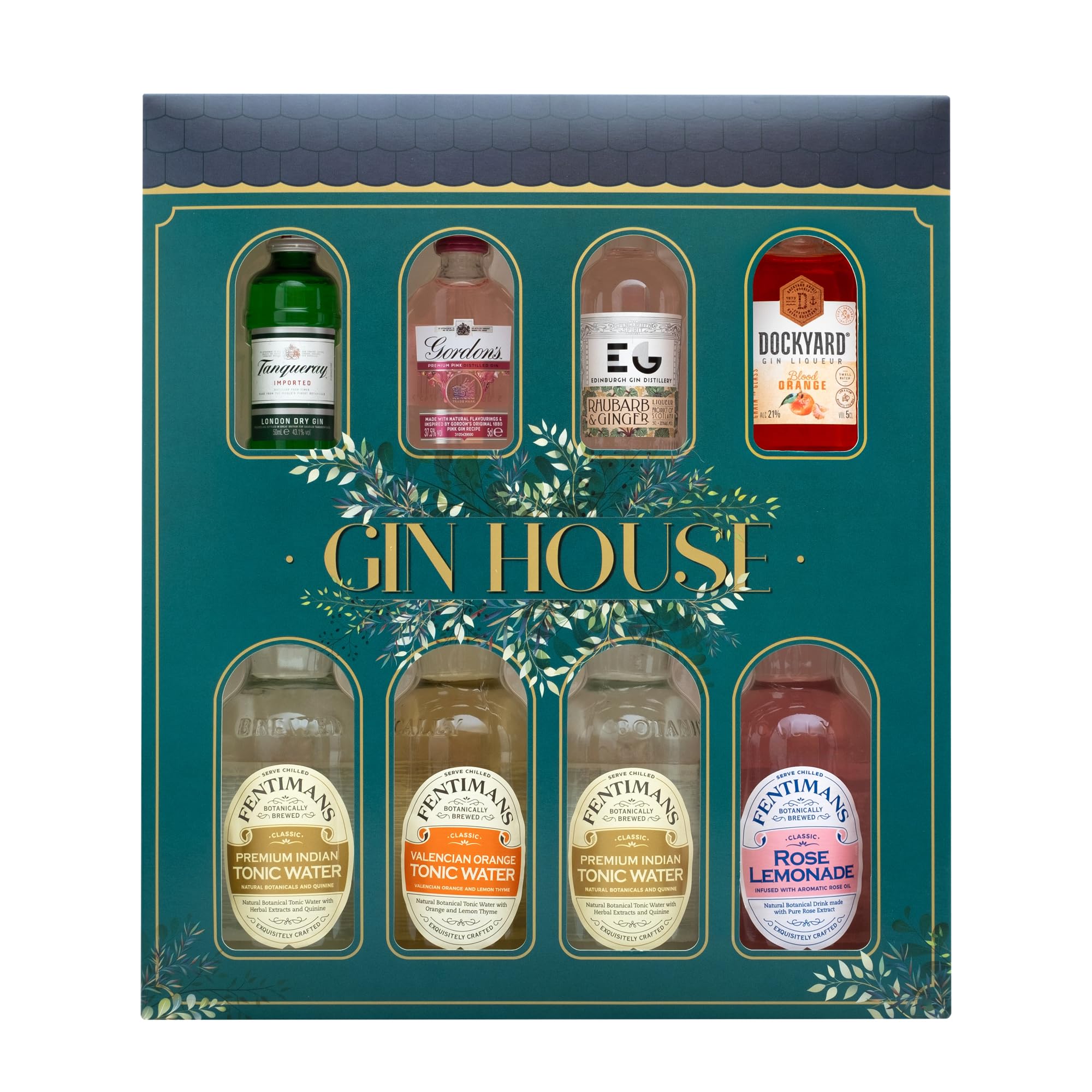 - Premium Christmas gin set favourites: 4x 5cl mini gin and flavoured gin liqueurs including; Gordons Gin, Pink 37.5% ABV, Edinburgh Gin Liqueur, Rhubarb Gin & Ginger 20% ABV, Tanqueray London Dry Gin 43.1% ABV, Dockyard Orange Gin 21% ABV gin miniatures