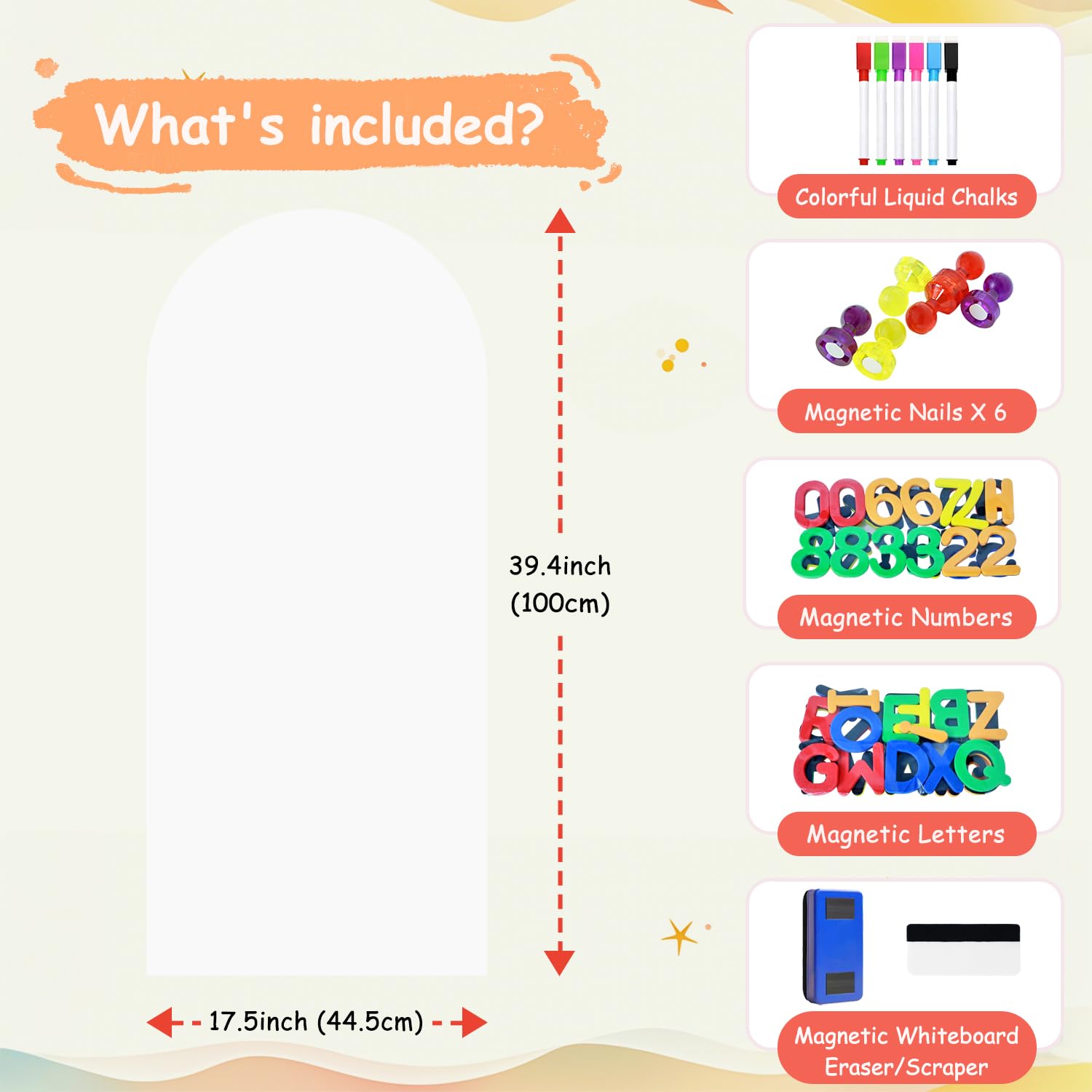 FUHSY Arch Magnetic Wall Decal 100x45cm White Magnetic Chalk Board Sticker Magnet Chalkboard for Wall Peel and Stick Self Adhesive Blackboard Multifunctional for Playroom Home