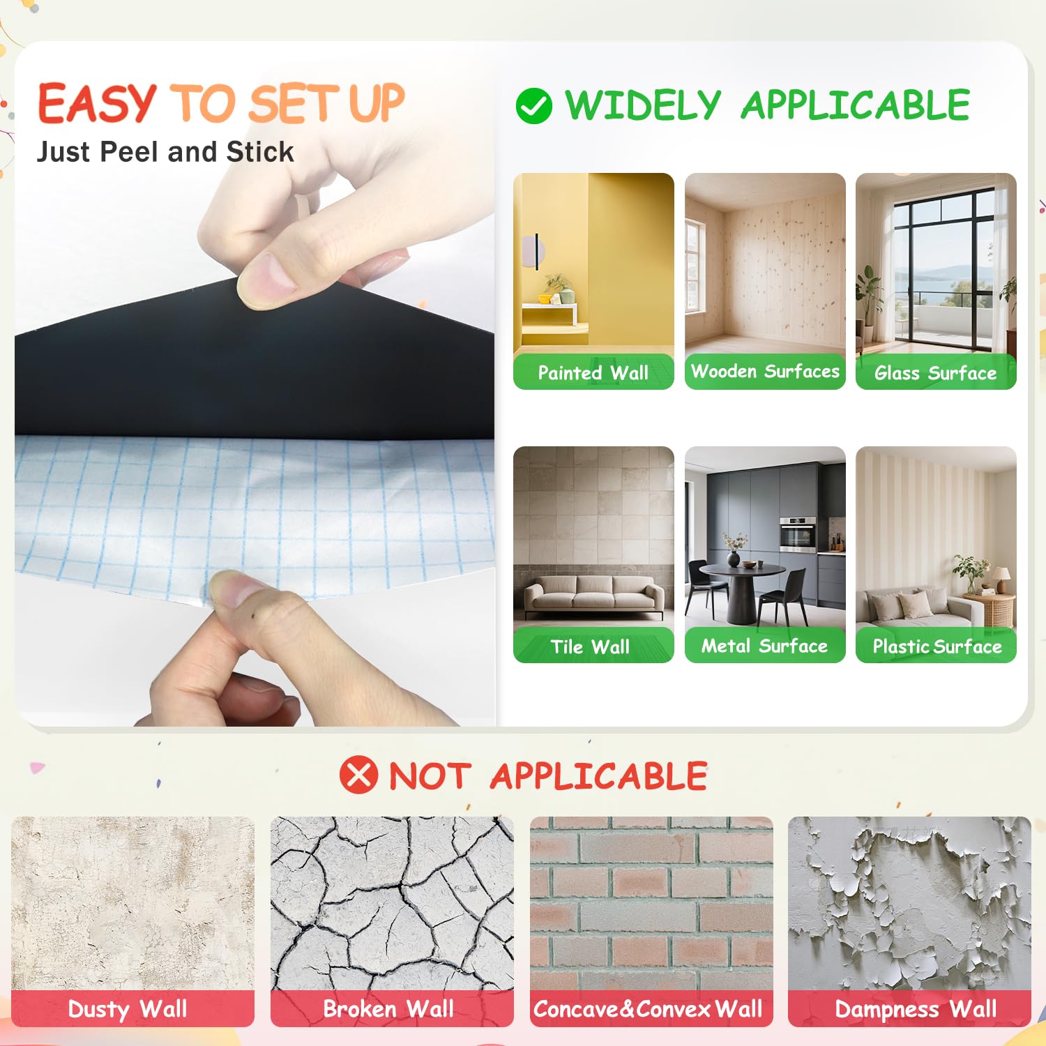 - 🎨【Safe & Eco-Friendly-Magnetic Decal Wall】: Made from non-toxic, odorless material, this magnetic chalkboard meets safety standards, ensuring a healthy environment. It’s part of a sustainable lifestyle, designed to last while offering peace of mind for families.