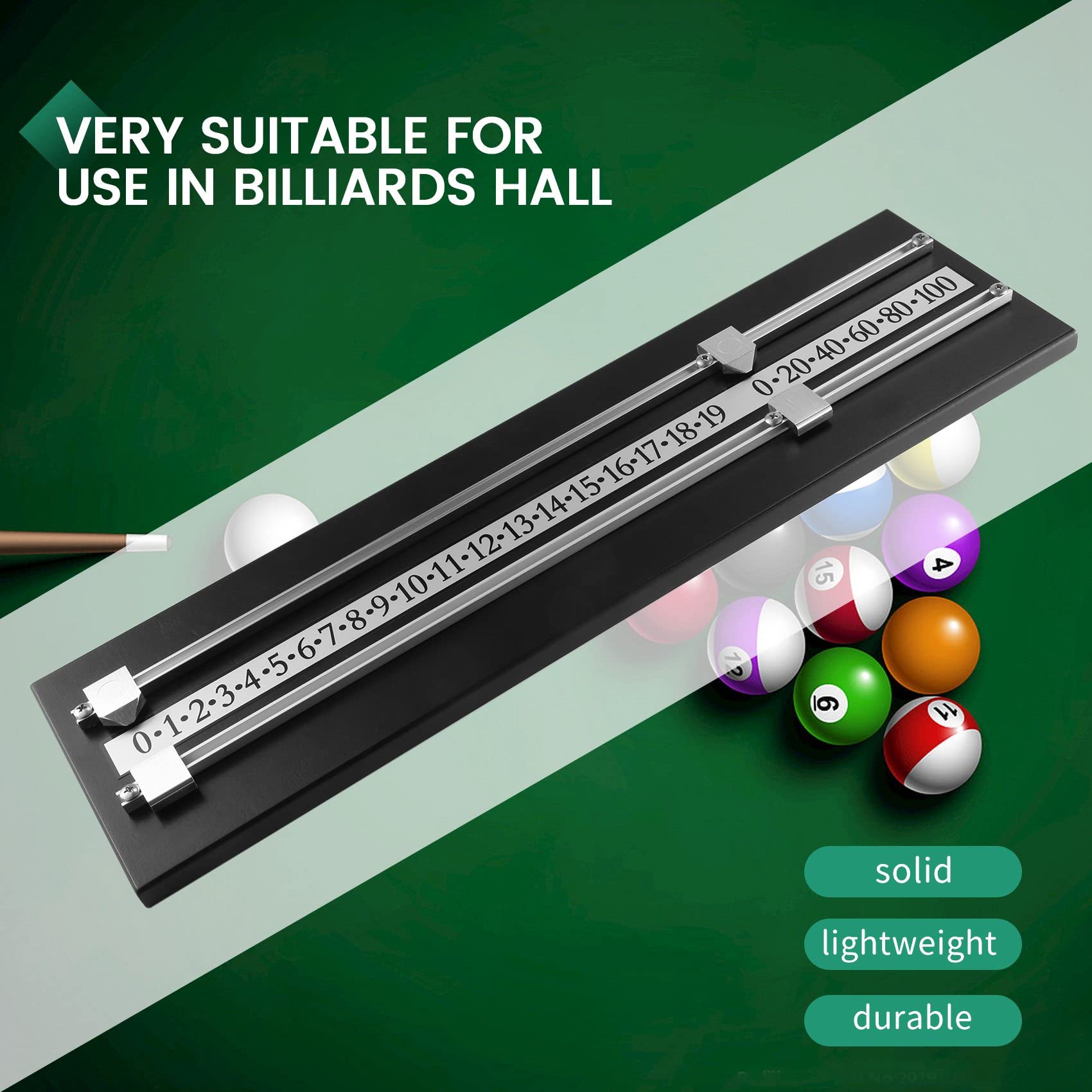 - Scores up to 100, The item is a wooden pool ball game scoreboard for billiard playing supplies.