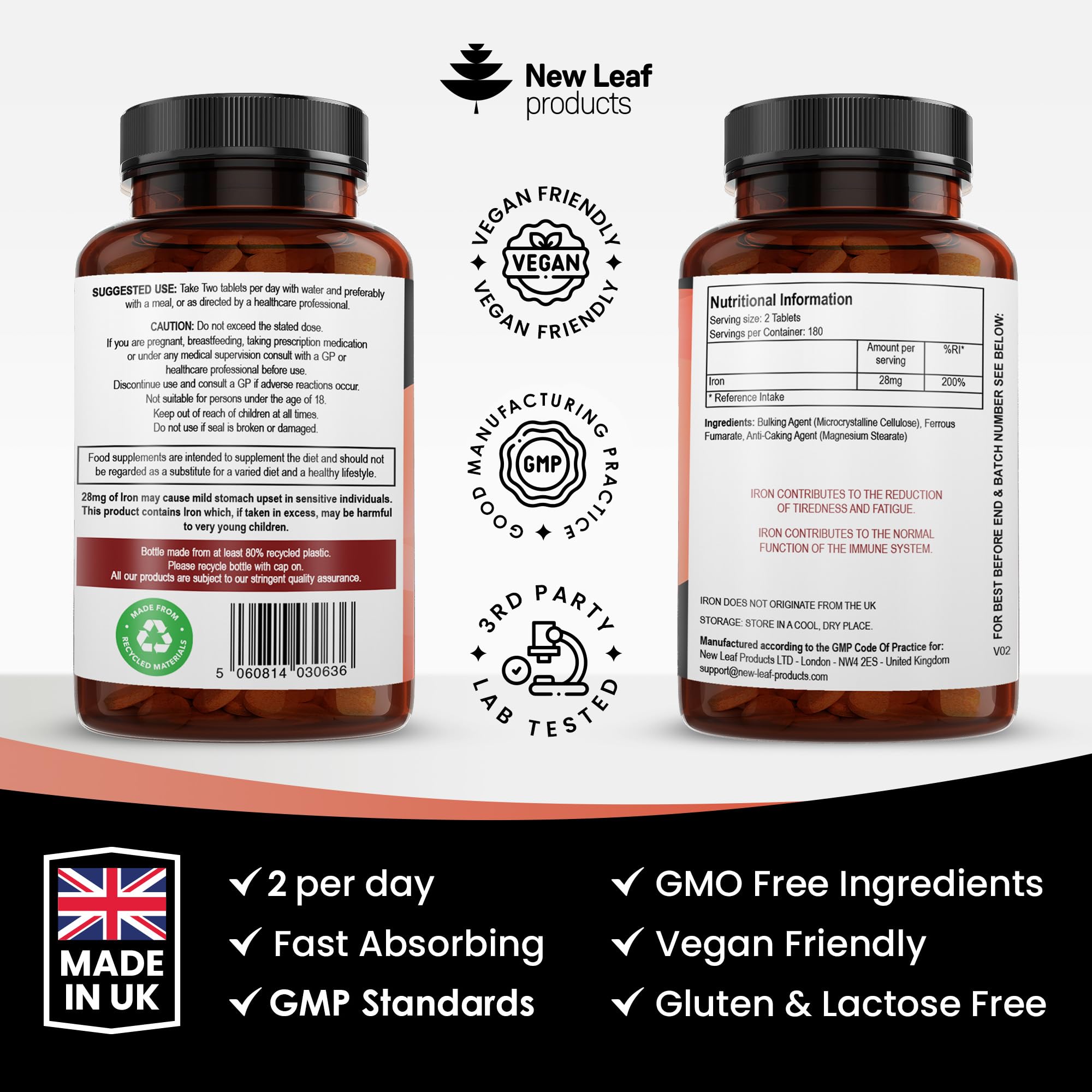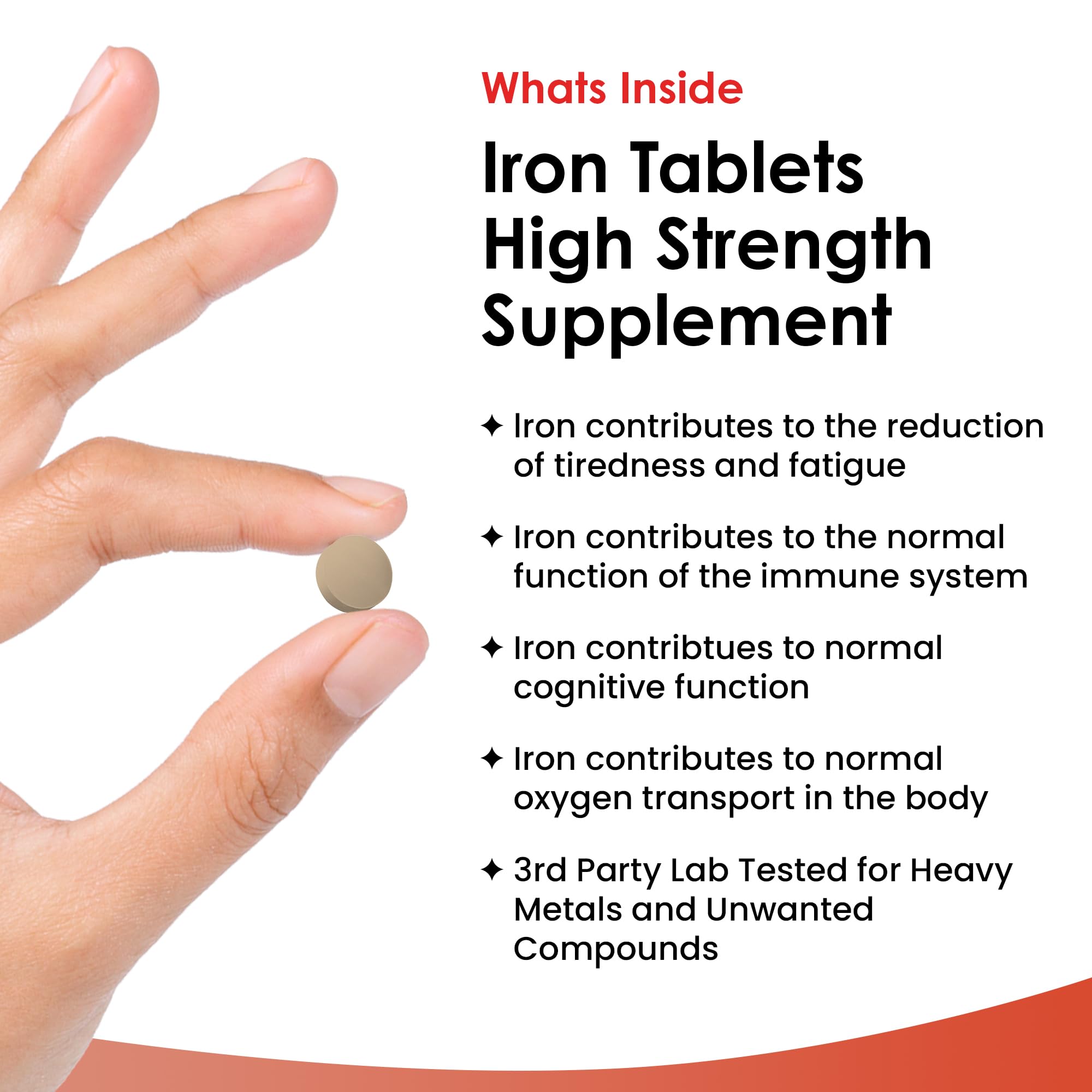 - THIRD PARTY LAB TESTED - Each ingredient is quality tested before our manufacturing process begins, once completed our high strength Iron tablets undergoes further rigorous quality testing. Our Iron supplements have been 3rd party tested for heavy metals and unwanted compounds by UK & Europe's largest testing facilities (Eurofins) The lab is UKAS accredited according to ISO/IEC 17025:2017.