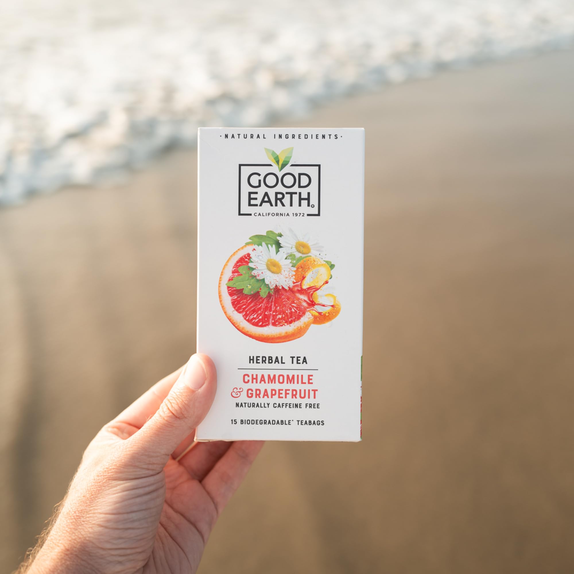 Good Earth Tea Co. Chamomile & Grapefruit Tea Bags – Naturally Caffeine-Free Herbal Blend with Soothing Chamomile and Zesty Grapefruit – 5 x 15 Plant-Based Teabags