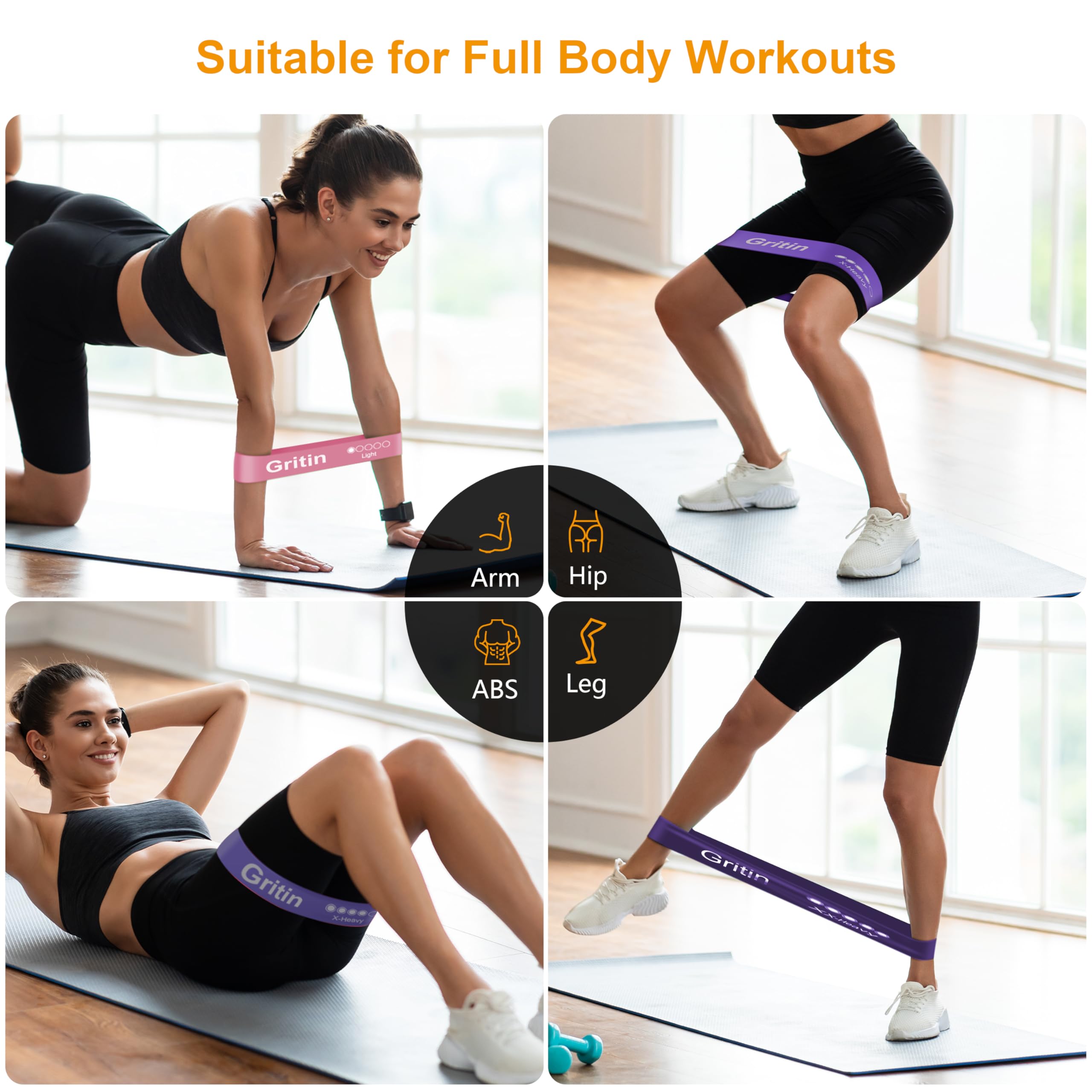 - 【What You Get】5X Gritin resistance bands with different level , 1X portable storage bag and 1x Manual in six languages.