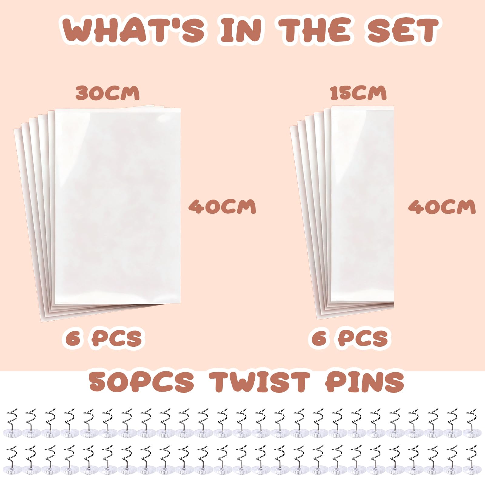 • 【LARGE COVER SIZE】The set includes a total of 12 pieces of cat scratch protection tape for furniture and 50 twist pins to secure it. With 6 pieces measuring 40cm x 30cm and 6 pieces measuring 40cm x 15cm, it's enough to cover most furniture surfaces.