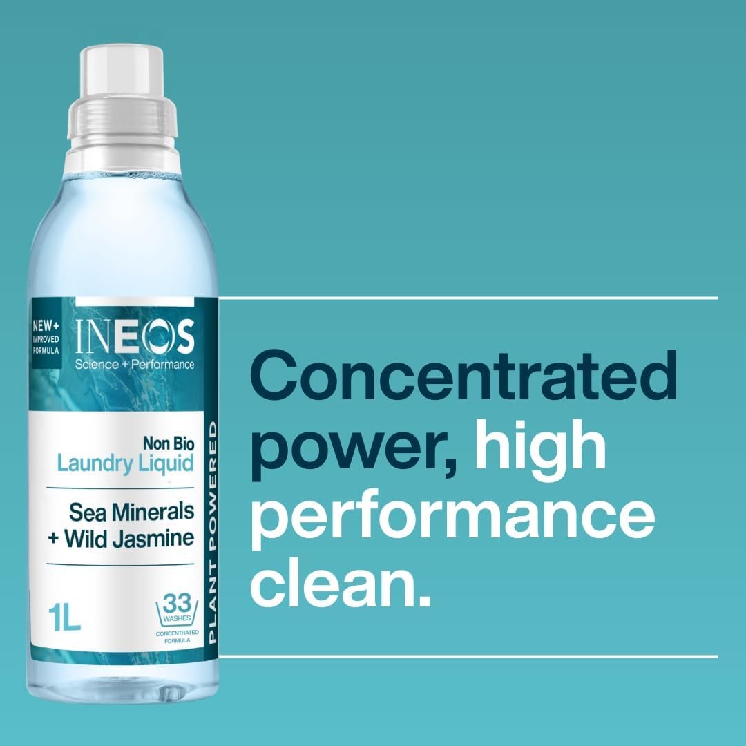 INEOS Next-Gen Non Bio Laundry Washing Liquid Detergent, 33 Washes (1L), Plant Powered, For Sensitive Skin, High Performance Stain Removal, Sea Minerals + Wild Jasmine