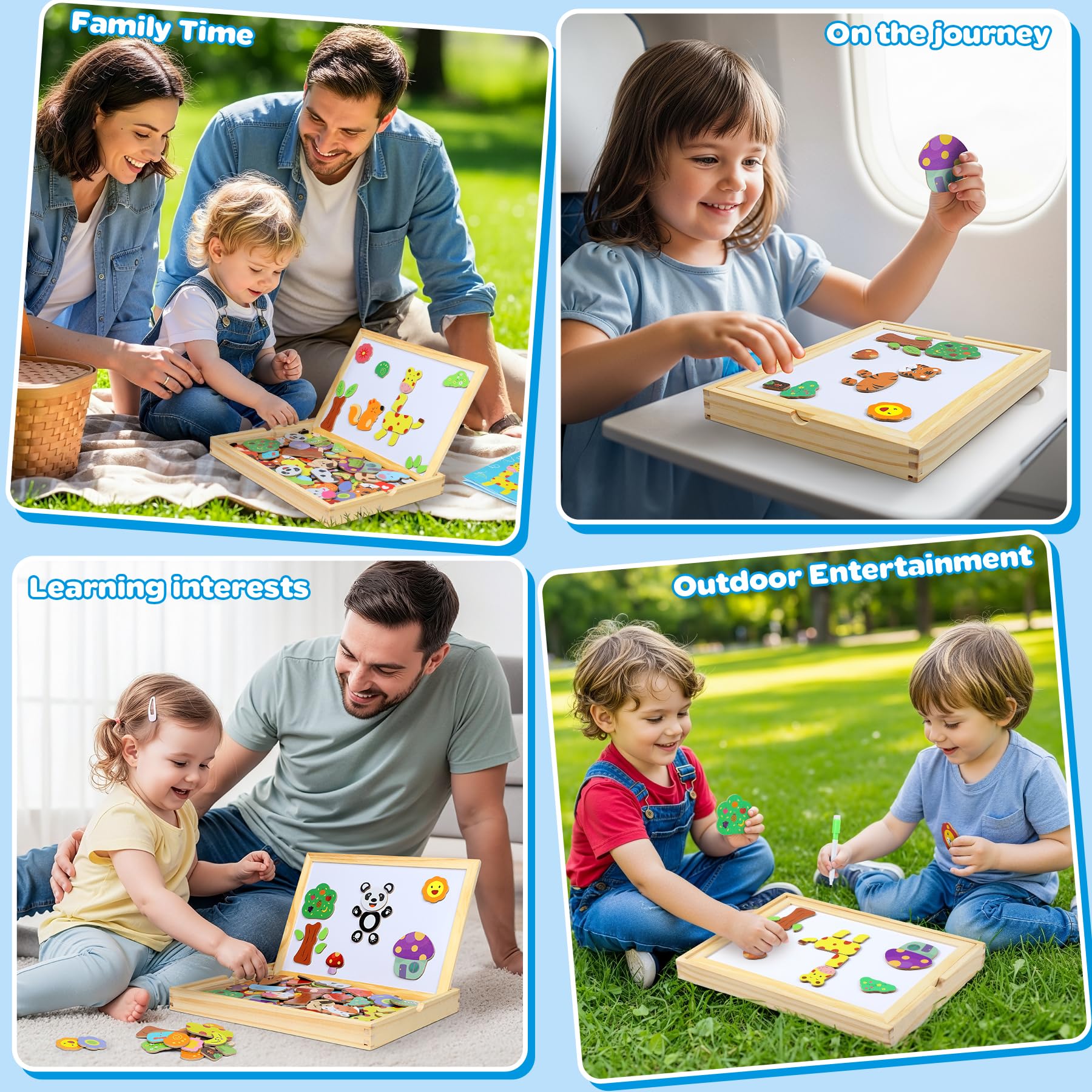 - 【Safe Material】The magnetic wooden puzzle is made of non-toxic materials. High-quality wooden material, carefully polished, no burrs, environmentally friendly, absolutely safe for kids toys. The best puzzles for 3 4 5 6 year olds boys girls. Also as gifts on children's birthdays, Christmas, Halloween, parties, etc.
