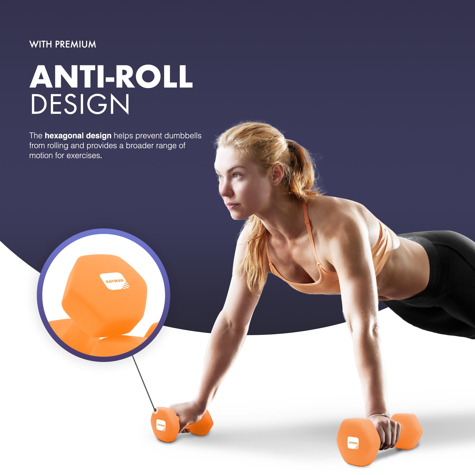 KAYMAN Neoprene Dumbbells with Anti-Slip Grip,Hex Edges,Water-Resistant Surface & Workout Poster-Weight Set for Home, Gym & Fitness (1kg 2kg 3kg 4kg 5kg 6kg 8kg 10kg) (3 Kg)