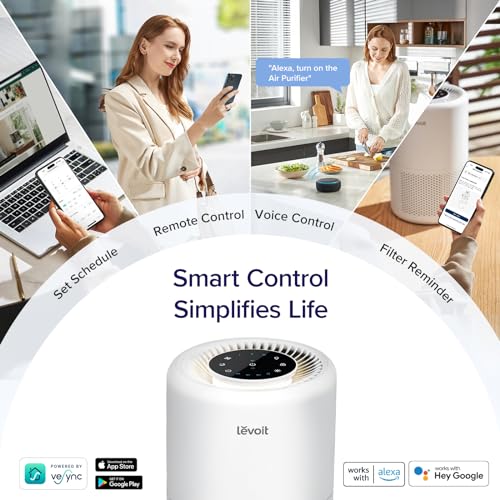 LEVOIT Smart HEPA Air Purifier for Bedroom Home 64m², Alexa & APP Control with Timer, Filter with Quiet Sleep Mode, Air Freshener, Remove Allergens for Dust Odour Pollen Smoke, Gift, Wifi, Core 200S