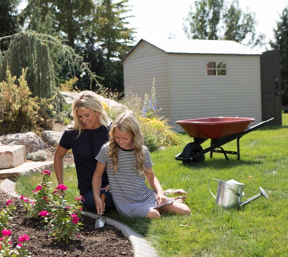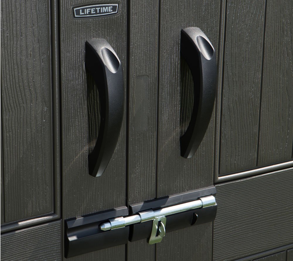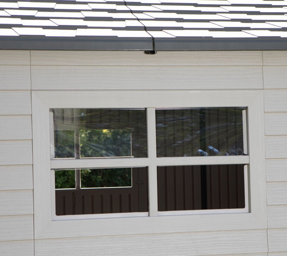 Lifetime 60252 Heavy Duty Garden Storage Shed, 7 x 9.5 ft (204 x 275 cm) Outdoor Workshop, Steel-Reinforced HDPE with Full-Length Skylight, Tan