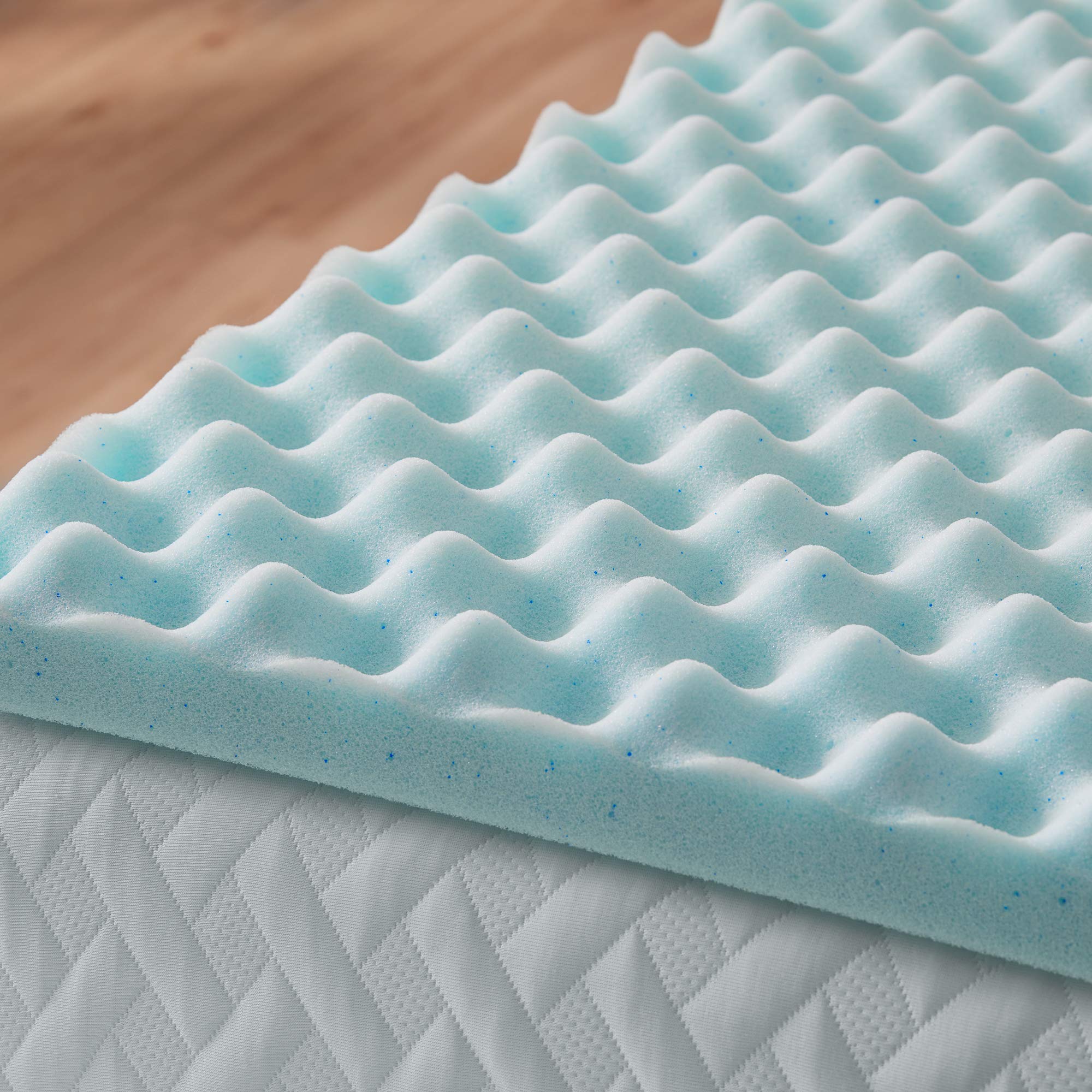 - MEMORY FOAM - Add a plush layer of comfort to any foam mattress with this mattress topper; the soft, convoluted memory foam supports the curves of your body and helps you fall asleep soundly and wake up feeling refreshed