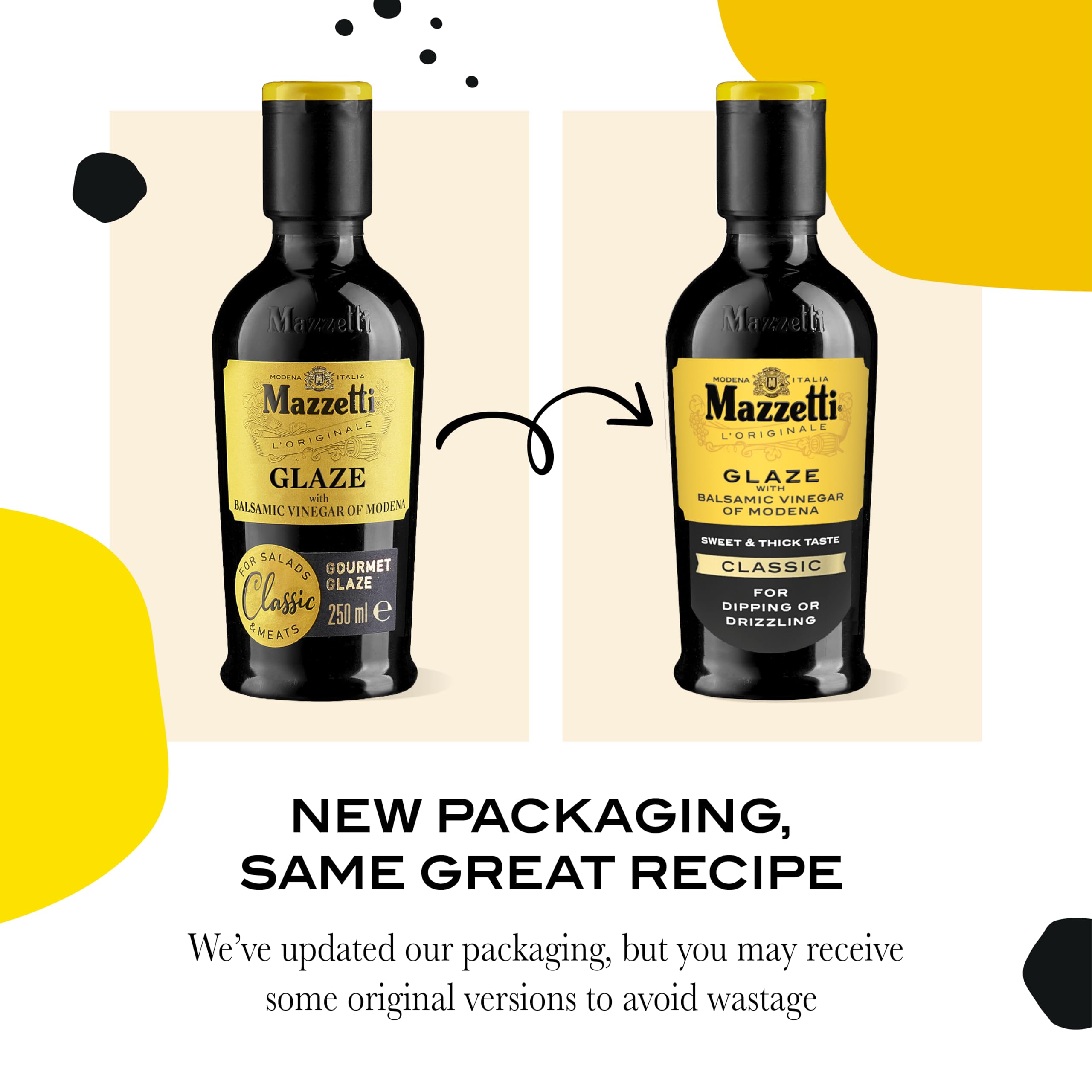 Mazzetti Balsamic Glaze, with Balsamic Vinegar of Modena. The original gourmet glaze, thick and sweet. Perfect for salads, meats and vegetables. Made in Italy, Black, 215 ml (Pack of 1)
