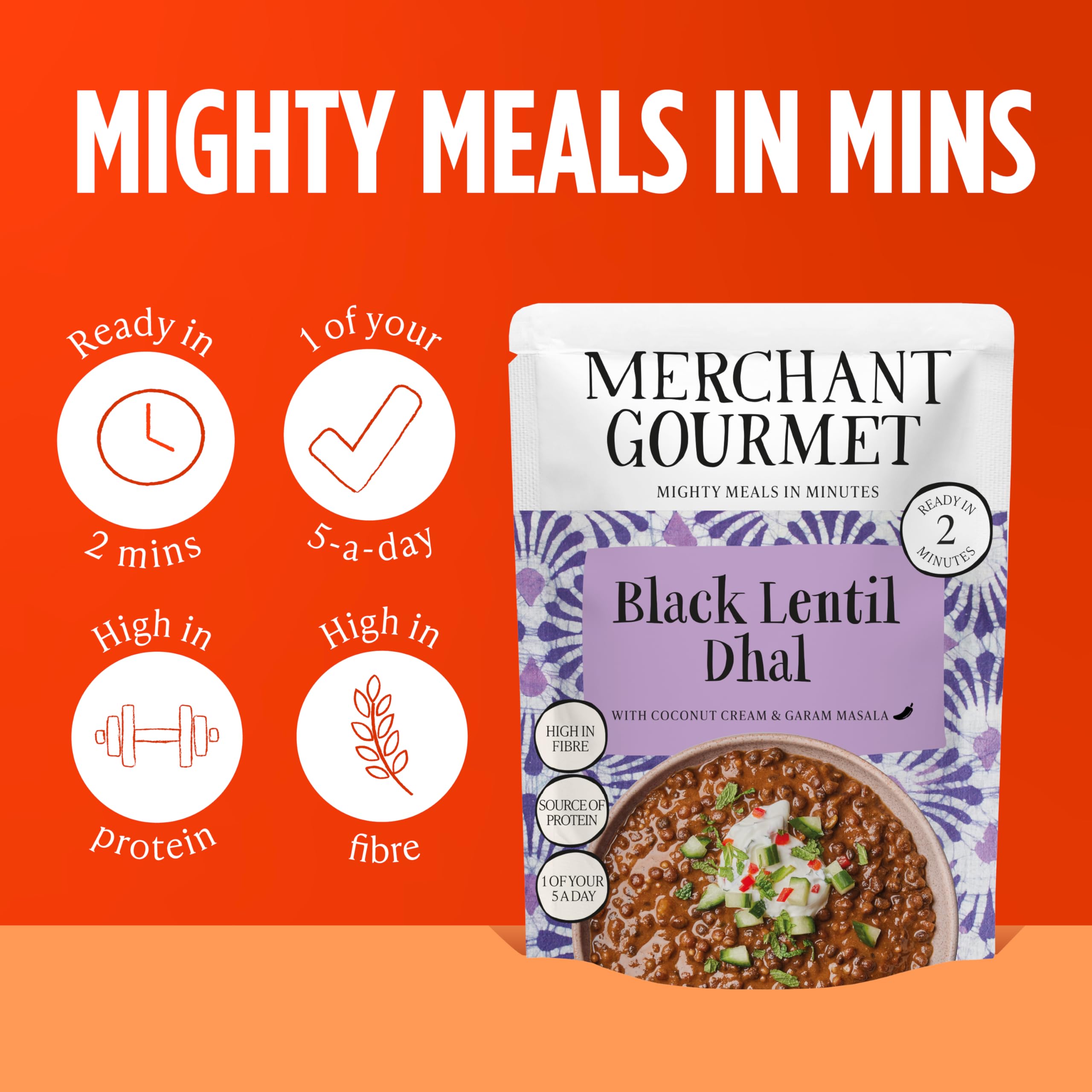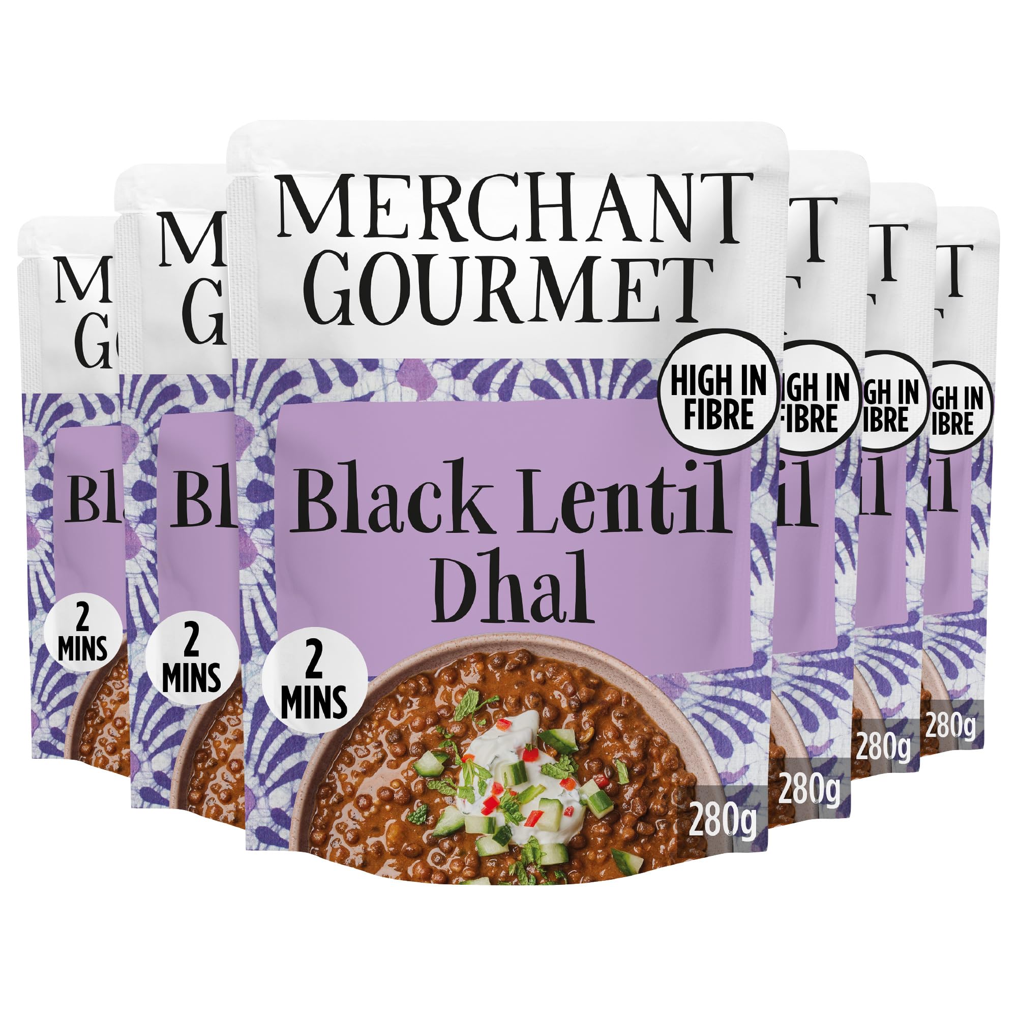 Merchant Gourmet Ready-to-eat Black Dhal, Pack of 6 x 280g Pouches - Source of Protein, High Fibre, Vegan. Cooked with Black Lentils & Coconut Cream, Plant-Based Ready-Meal Option